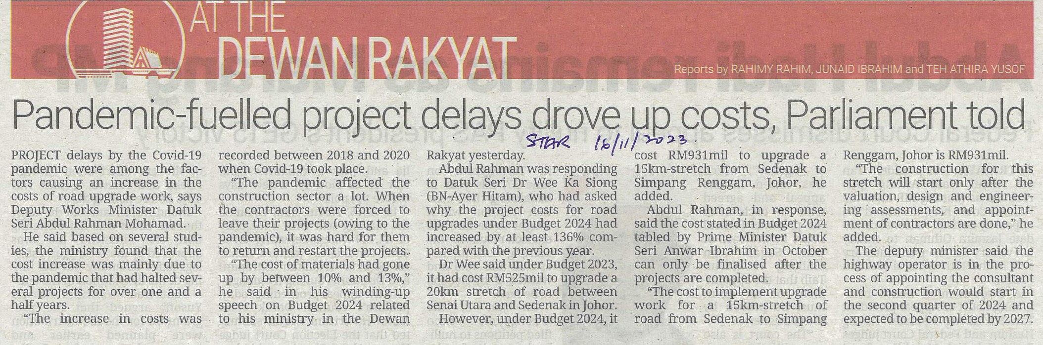 https://repositori.parlimen.gov.my/handle/123456789/1402| Title: | Pandemic-fuelled project delays drove up costs, Parliament told |