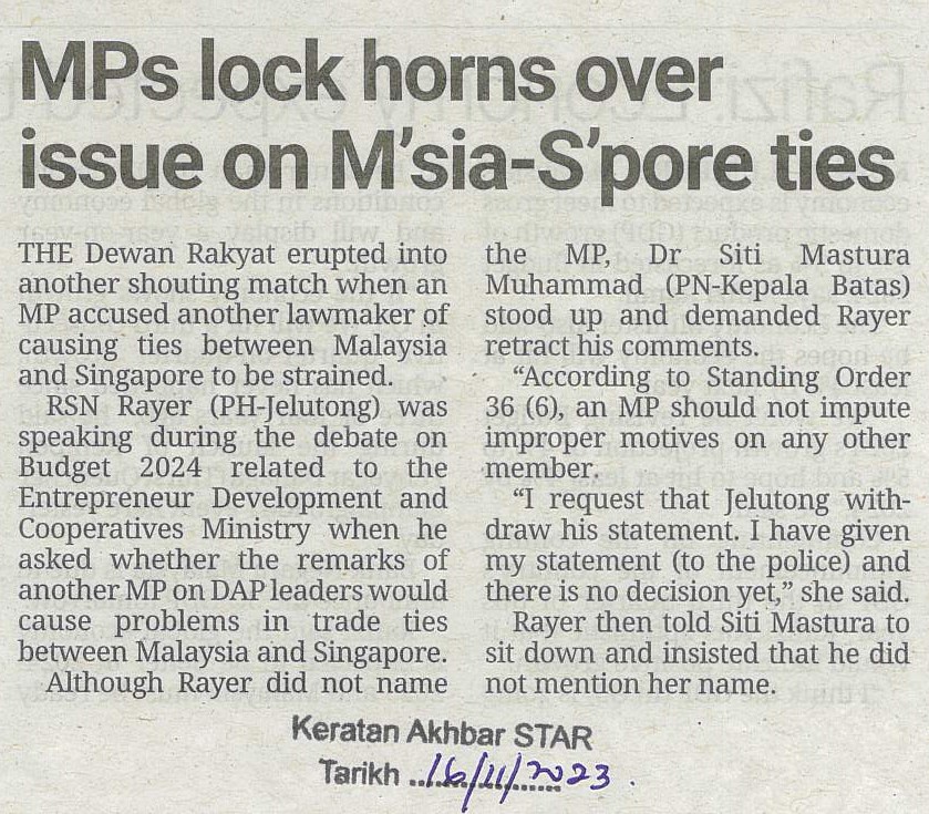 | MPs lock horns over issue on M’sia-S’pore ties.jpg | MPs lock horns over issue on M’sia-S’pore ties | 242.15 kB | JPEG | View/Open |