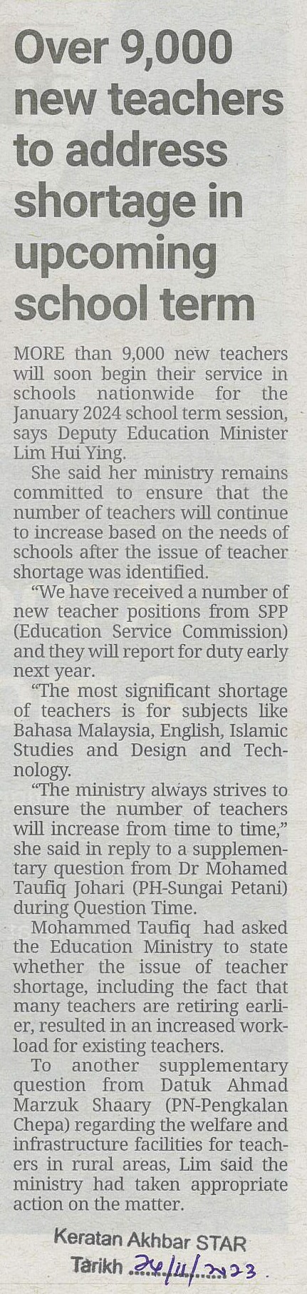 https://repositori.parlimen.gov.my/handle/123456789/1431| Title: | Over 9,000 new teachers to address shortage in upcoming school term |