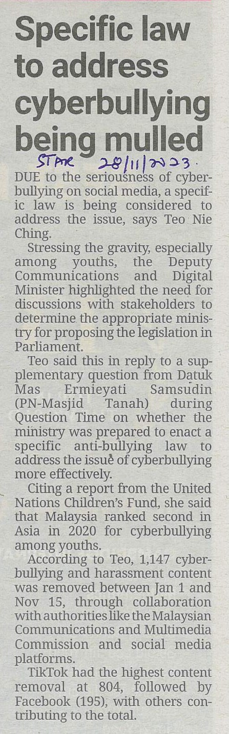 Title: Specific law to address cyberbullying being mulled