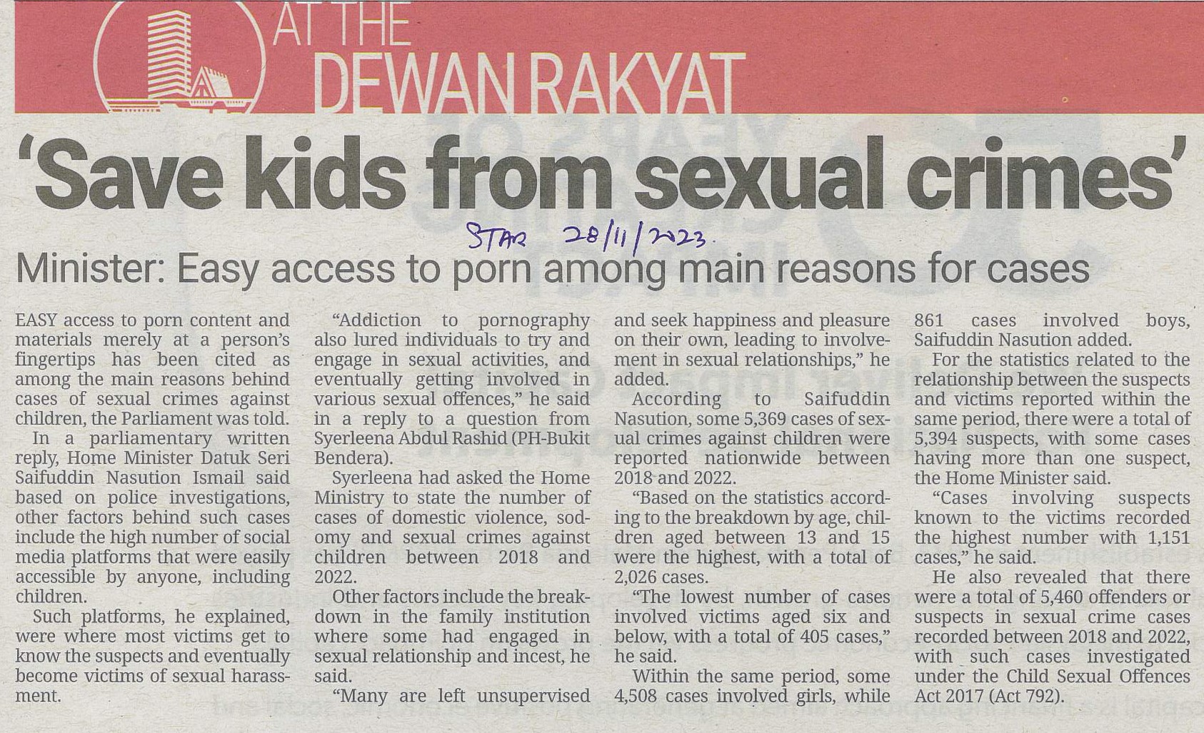 https://repositori.parlimen.gov.my/handle/123456789/1436| Title: | ‘Save kids from sexual crimes’ |
