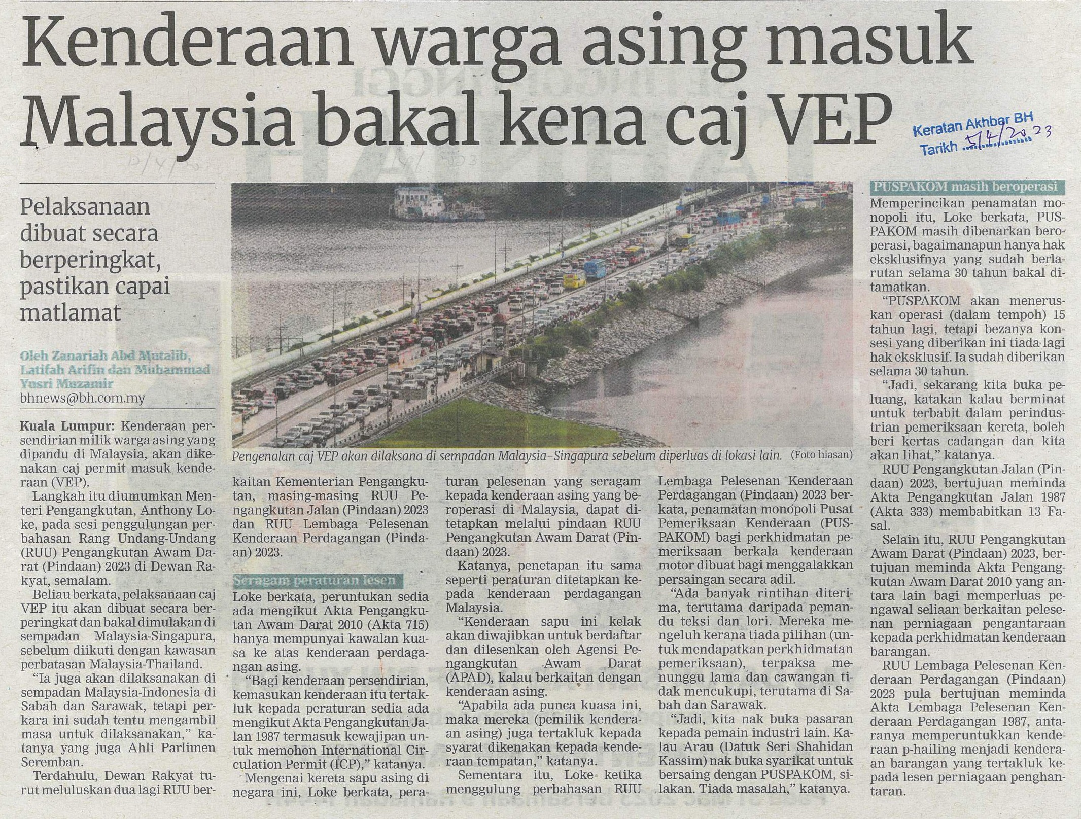 | Kenderaan warga asing masuk Malaysia bakal kena caj VEP.jpg | Kenderaan warga asing masuk Malaysia bakal kena caj VEP | 1.33 MB | JPEG | View/Open |