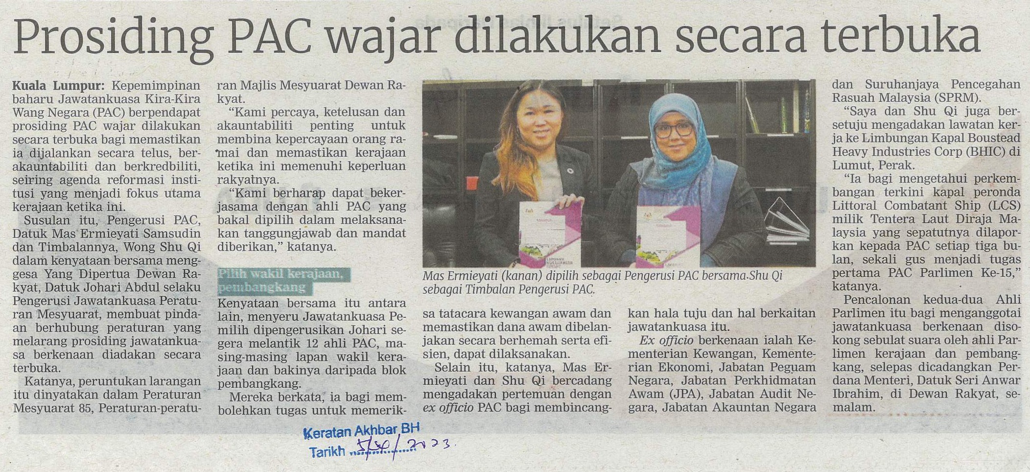 https://repositori.parlimen.gov.my/handle/123456789/2670| Title: | Prosiding PAC wajar dilakukan secara terbuka |