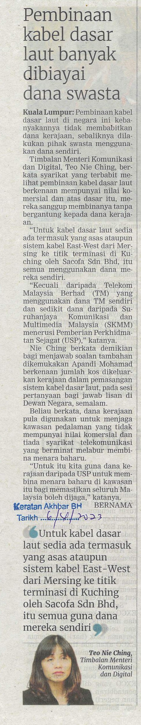 Title: Pembinaan kabel dasar laut banyak dibiayai dana swasta