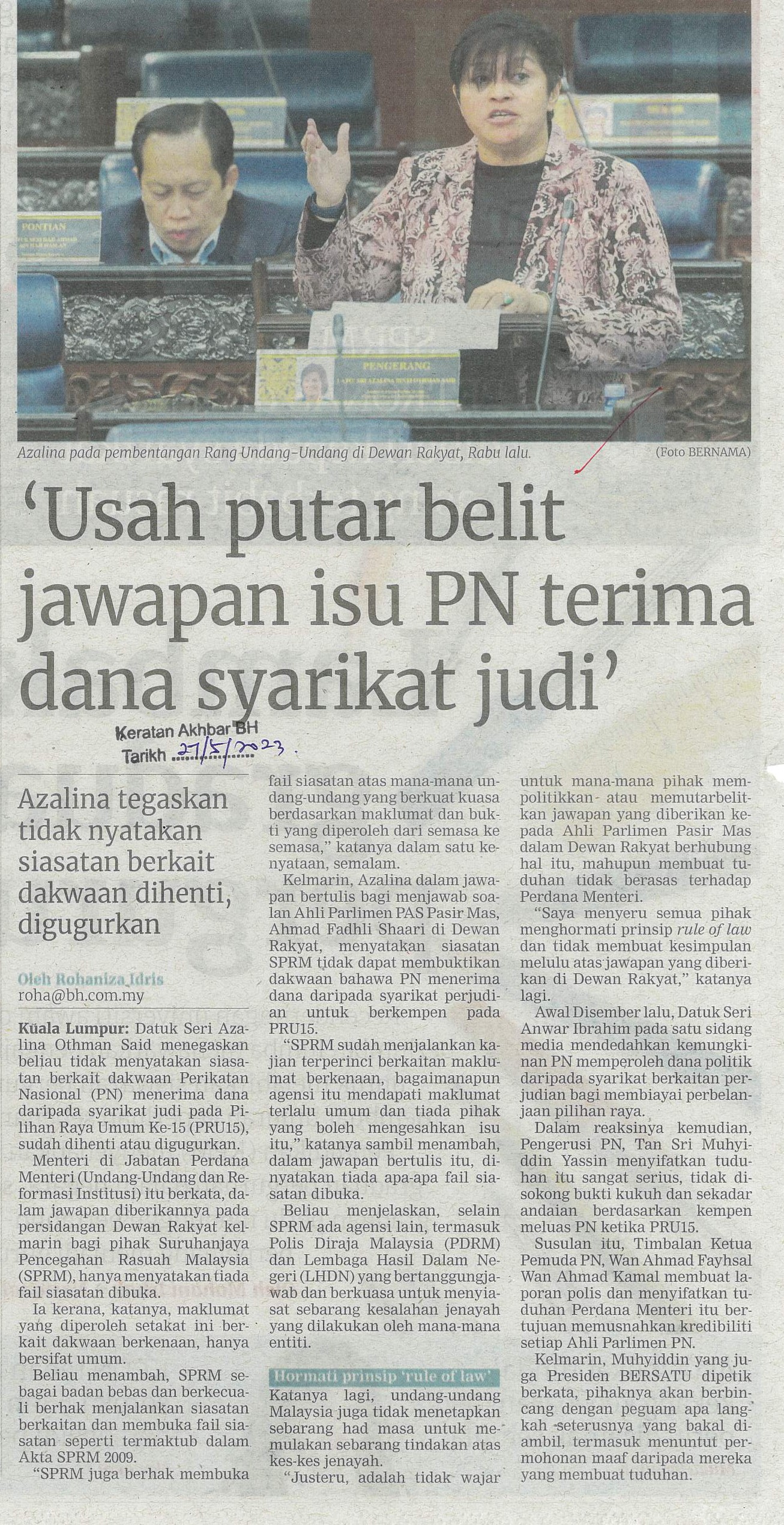 | 'Usah putar belit jawapan isu PN terima dana syarikat judi'.jpg | 'Usah putar belit jawapan isu PN terima dana syarikat judi' | 1.22 MB | JPEG | View/Open |