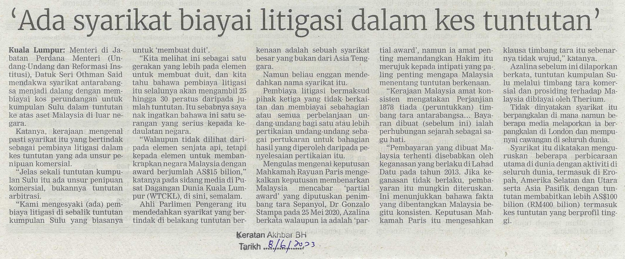 https://repositori.parlimen.gov.my/handle/123456789/2736| Title: | 'Ada syarikat biayai litigasi dalam kes tuntutan' |