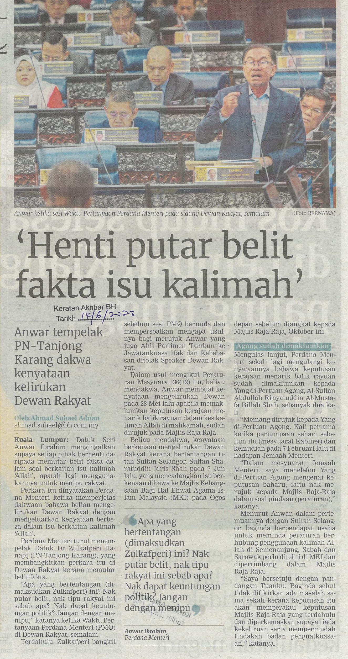 https://repositori.parlimen.gov.my/handle/123456789/2767| Title: | 'Henti putar belit fakta isu kalimah' |