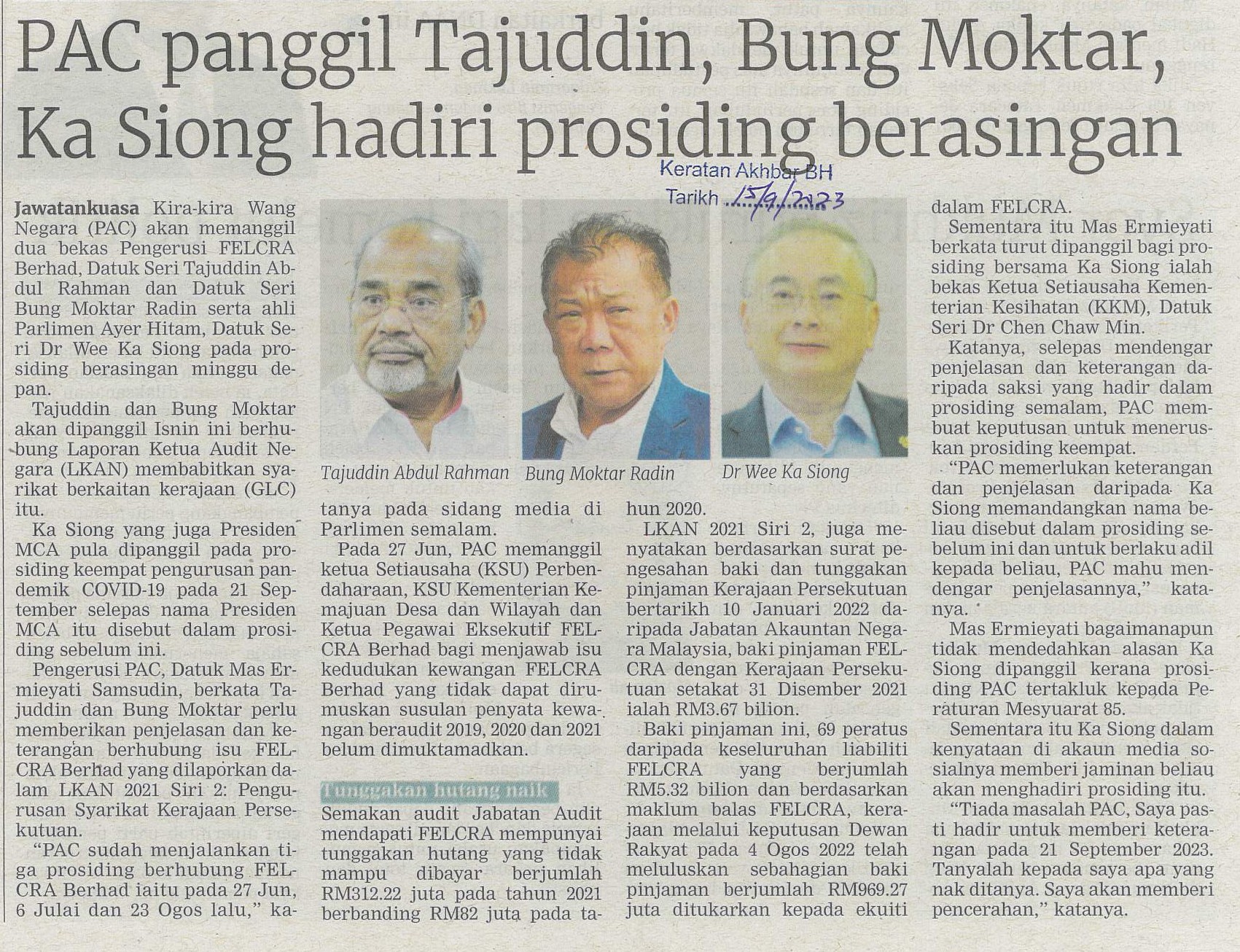 Title: PAC panggil Tajuddin, Bung Moktar, Ka Siong hadiri prosiding berasingan