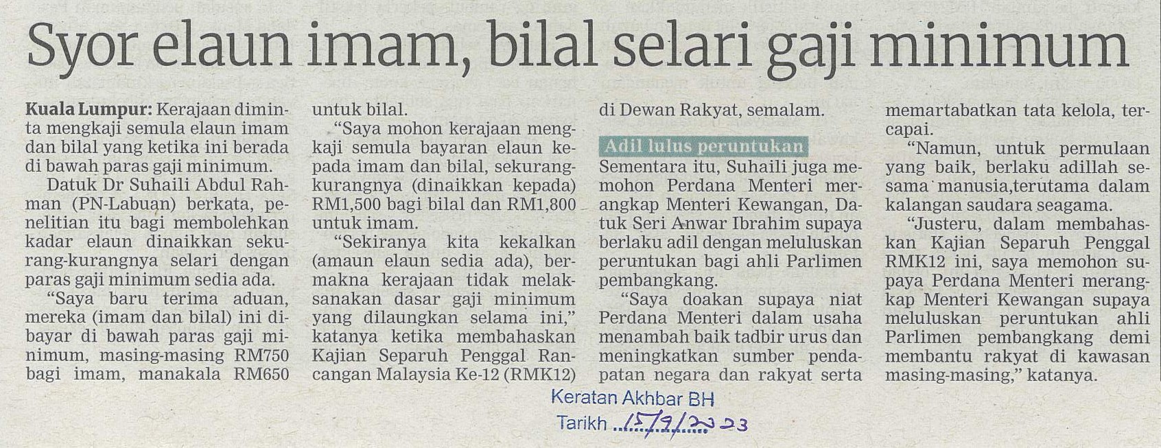 https://repositori.parlimen.gov.my/handle/123456789/2887| Title: | Syor elaun imam, bilal selari gaji minimum |