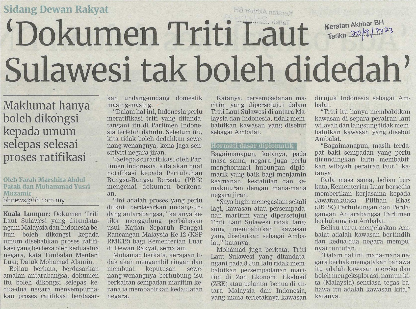 Title: Dokumen Triti Laut Sulawesi tak boleh didedah