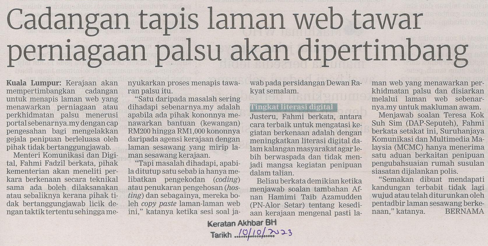 Title: Cadangan tapis lama web tawar perniagaan palsu akan dipertimbang
