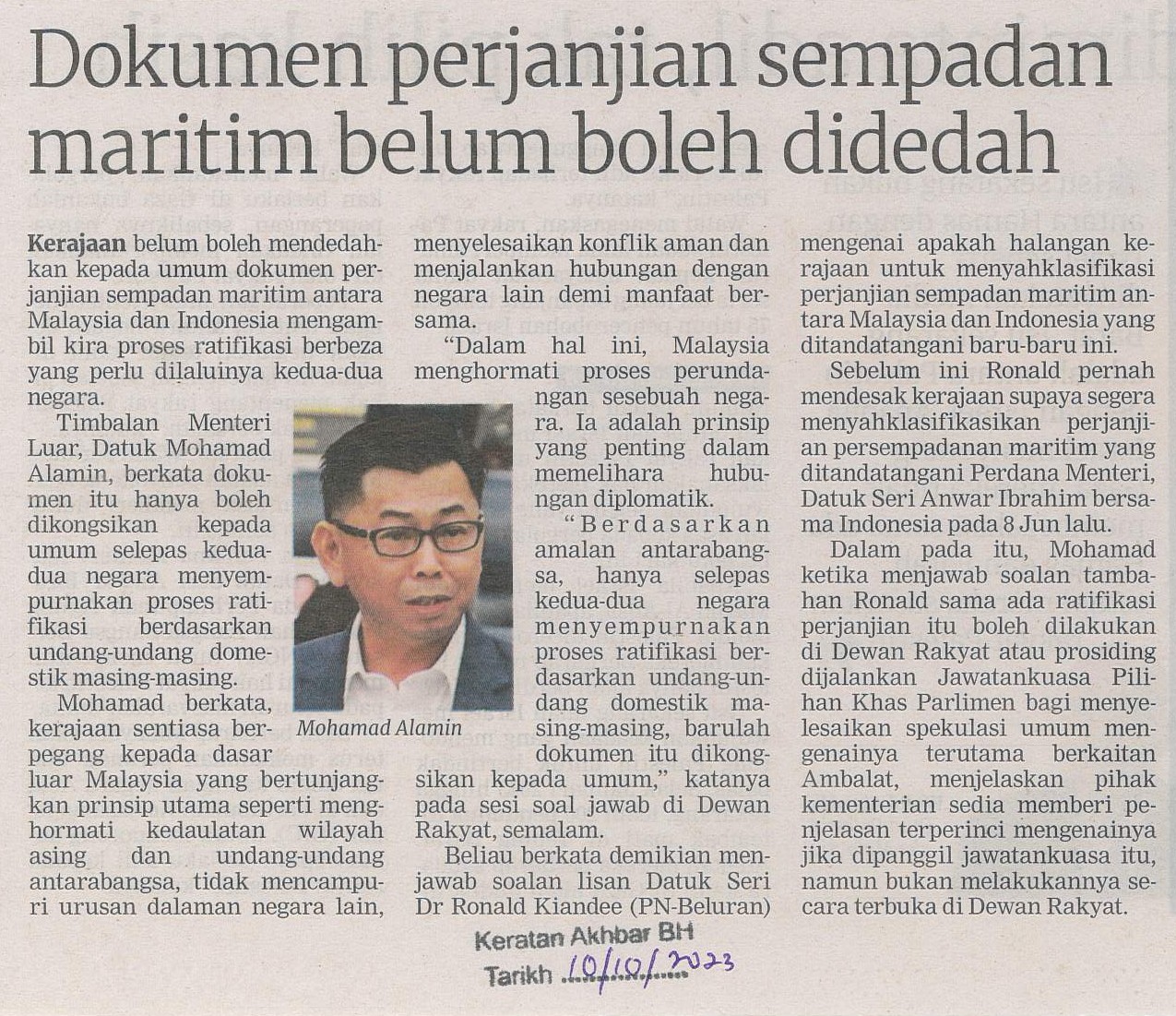 https://repositori.parlimen.gov.my/handle/123456789/2924| Title: | Dokumen perjanjian sempadan maritim belum didedah |