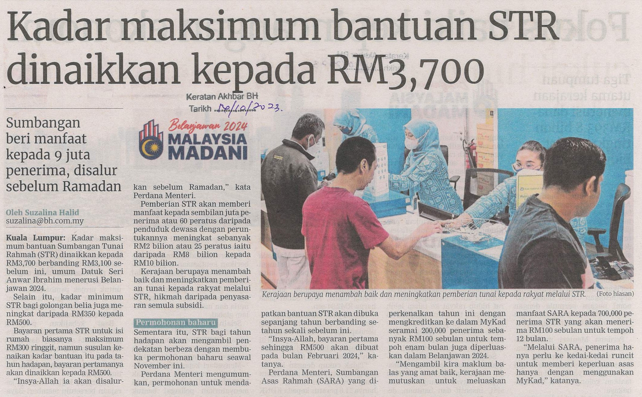 | Kadar maksimum bantuan STR dinaikkan kepada RM3,700.jpg | Kadar maksimum bantuan STR dinaikkan kepada RM3,700 | 918.19 kB | JPEG | View/Open |
