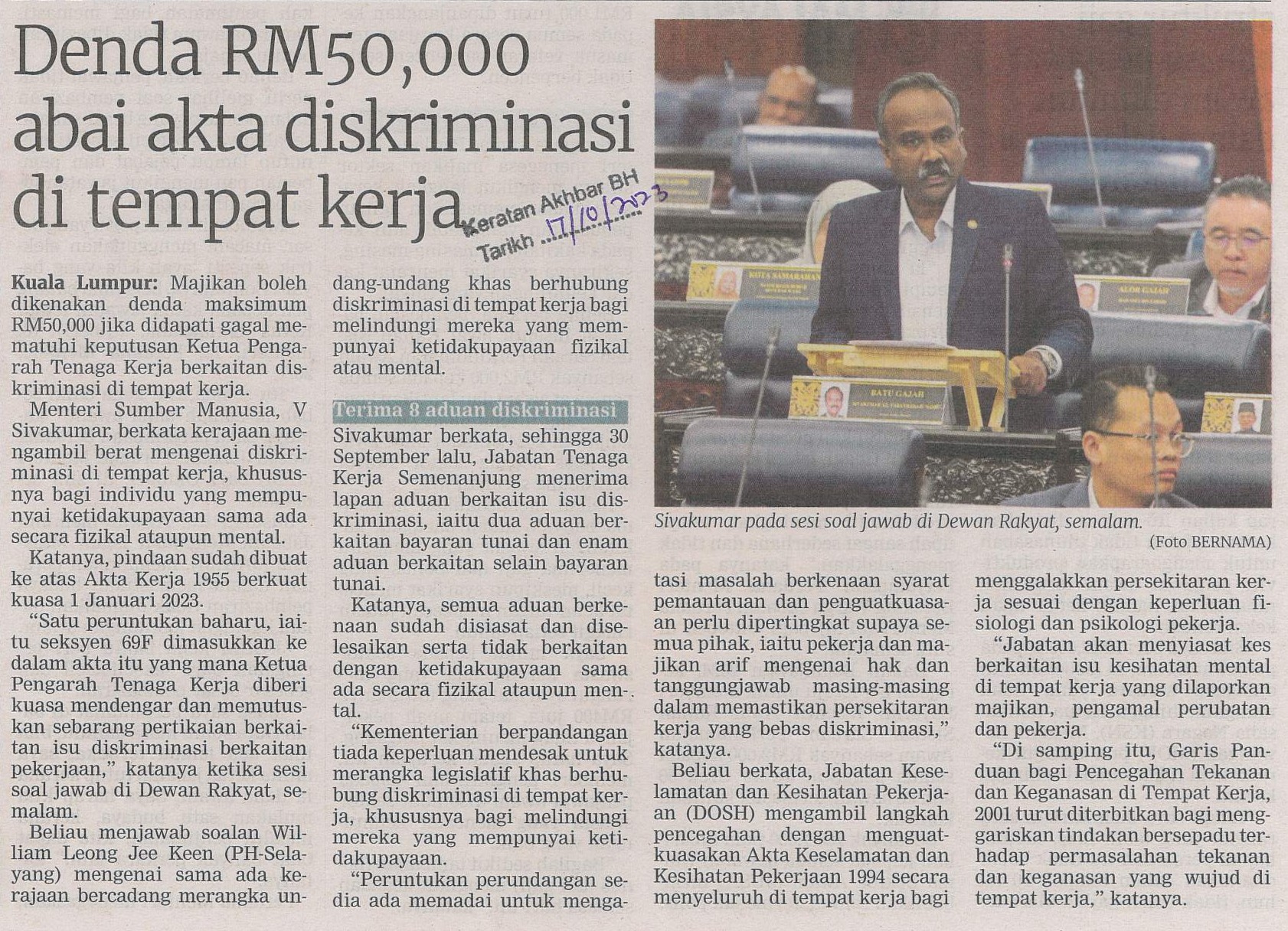 Title: Denda RM50,000 abai akta diskriminasi di tempat kerja