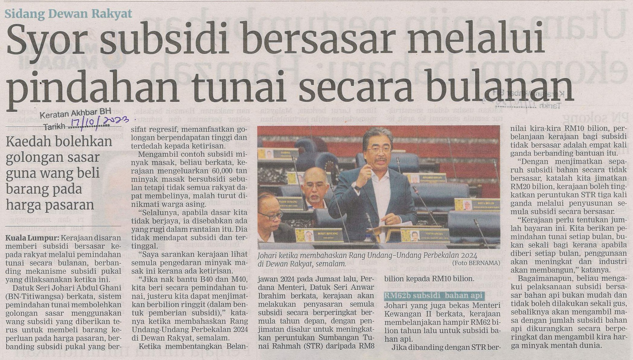 Title: Syor subsidi bersasar melalui pindahan tunai secara bulanan