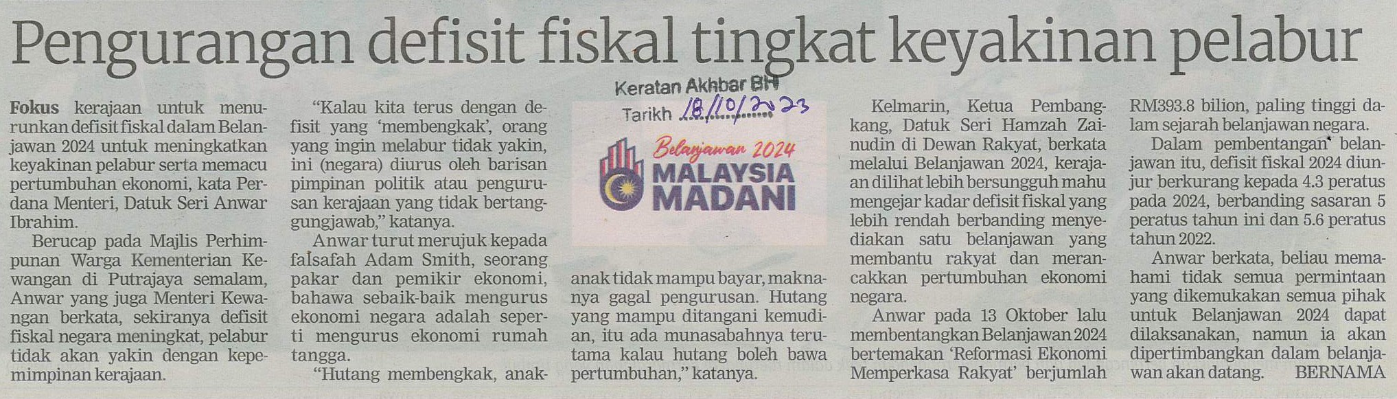 Title: Pengurangan defisit fiskal tingkat keyakinan pelabur
