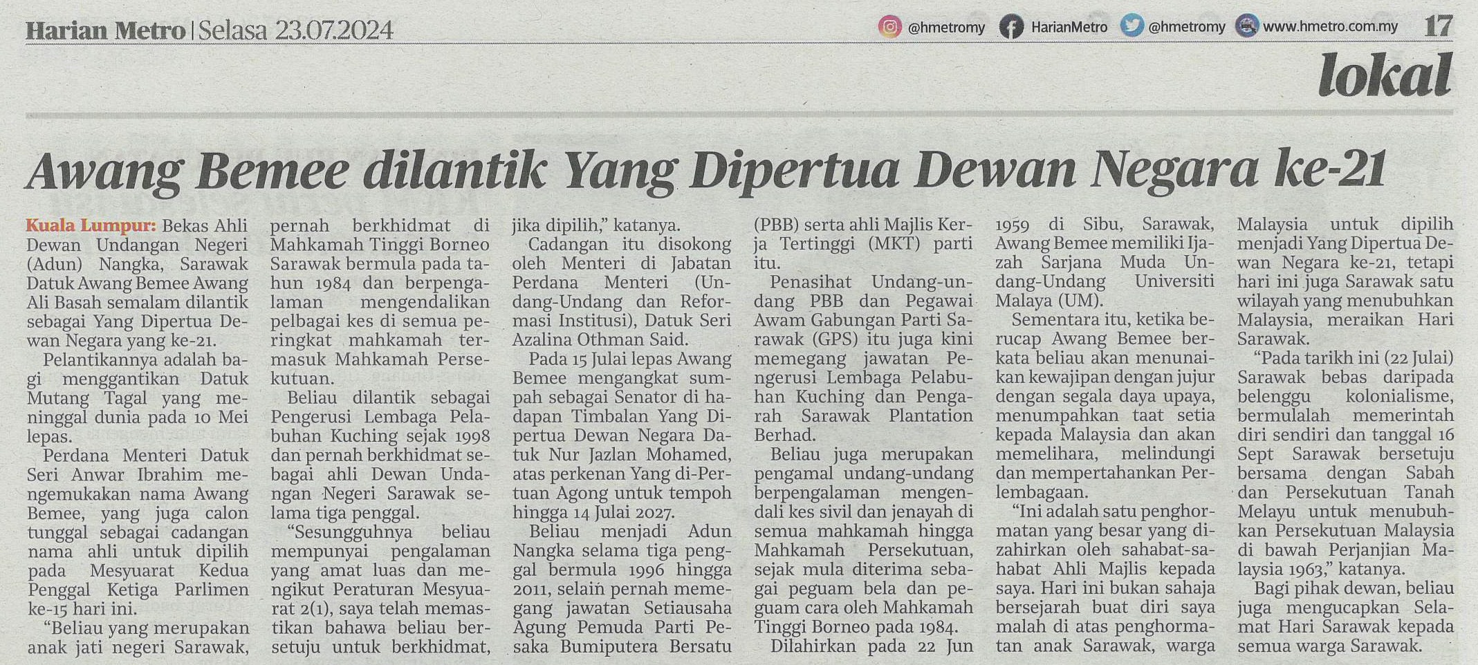 | 23.7.2024 HM.jpg | Awang Bemee dilantik Speaker Dewan Negara Ke-21 | 779.18 kB | JPEG | View/Open |