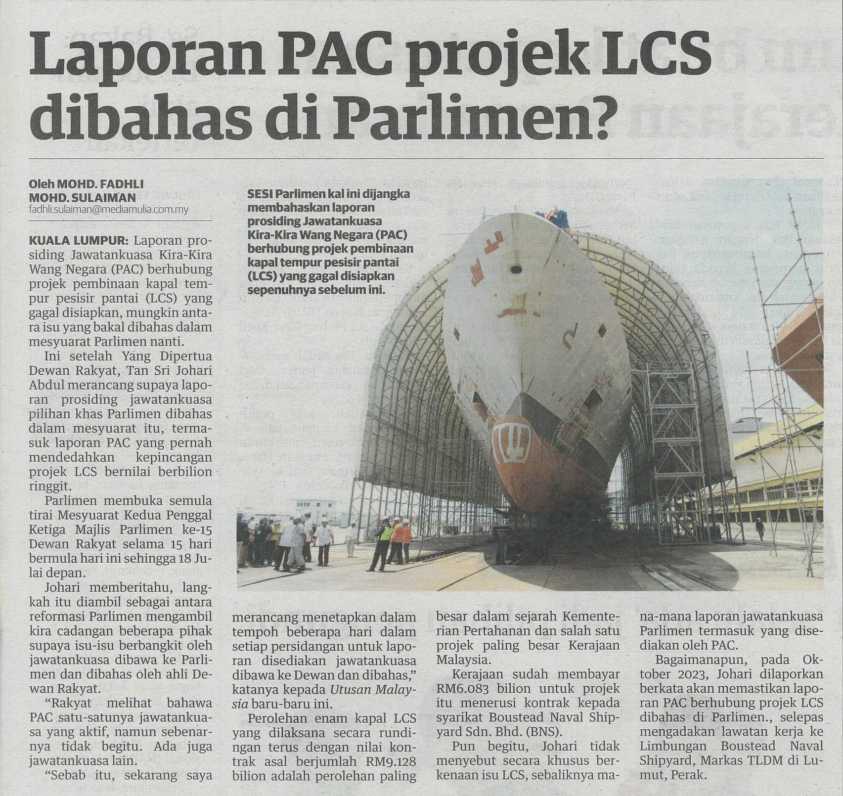 | 24.6.2024-3 UM.jpg | Laporan PAC projek LCS dibahas di Parlimen | 918.44 kB | JPEG | View/Open |