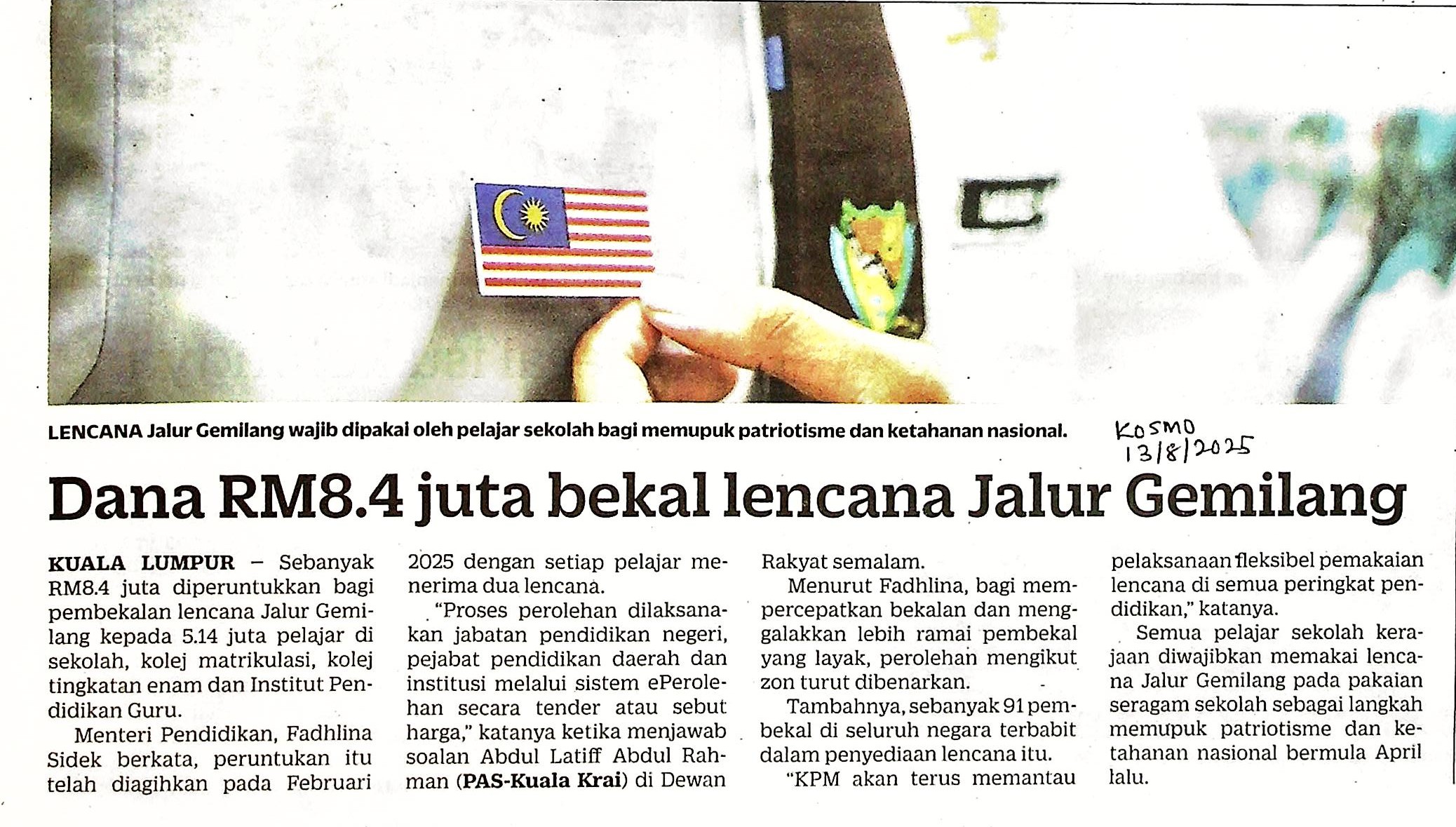 | KOSMO 13.8.25.jpg | DANA RM8.4 JUTA BEKAL LENCANA JALUR GEMILANG | 577.76 kB | JPEG | View/Open |