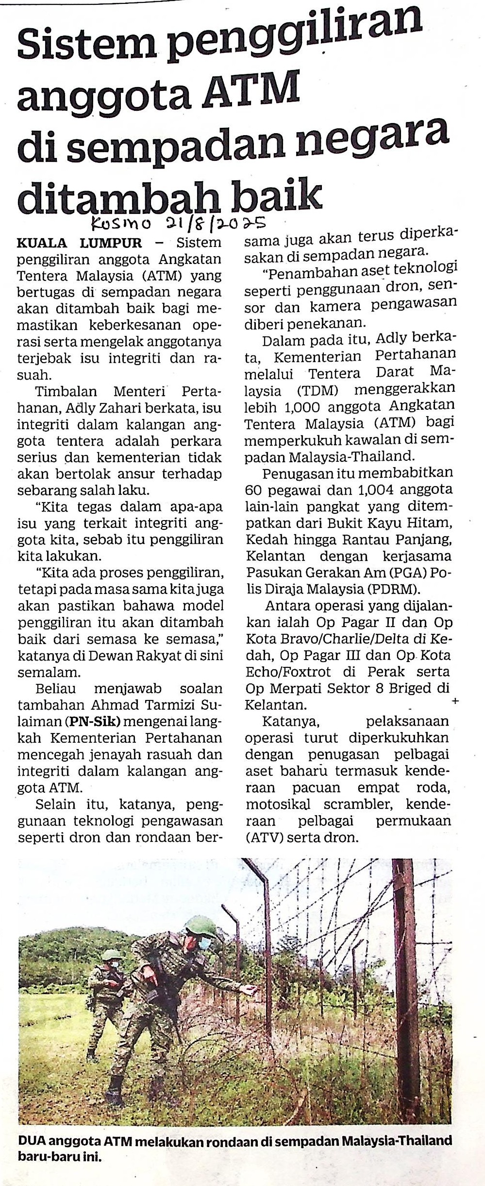 | KOSMO 21.08.jpg | SISTEM PENGGILIRAN ANGGOTA ATM DI SEMPADAN NEGARA DITAMBAH BAIK | 846.42 kB | JPEG | View/Open |