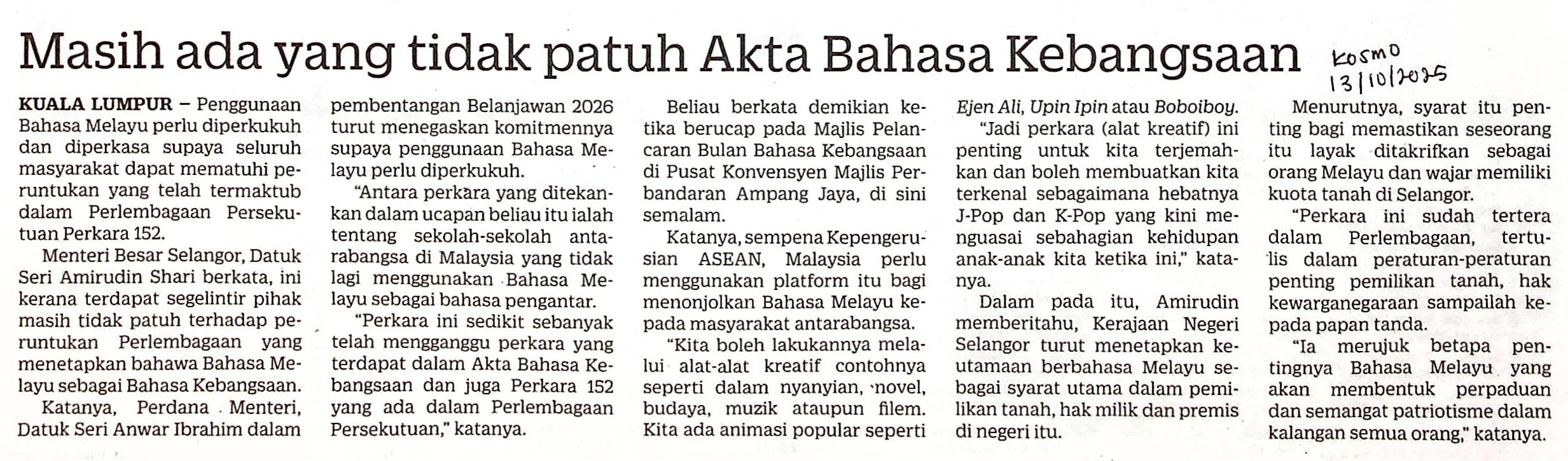 Title: MASIH ADA YANG TIDAK PATUH AKTA BAHASA KEBANGSAAN