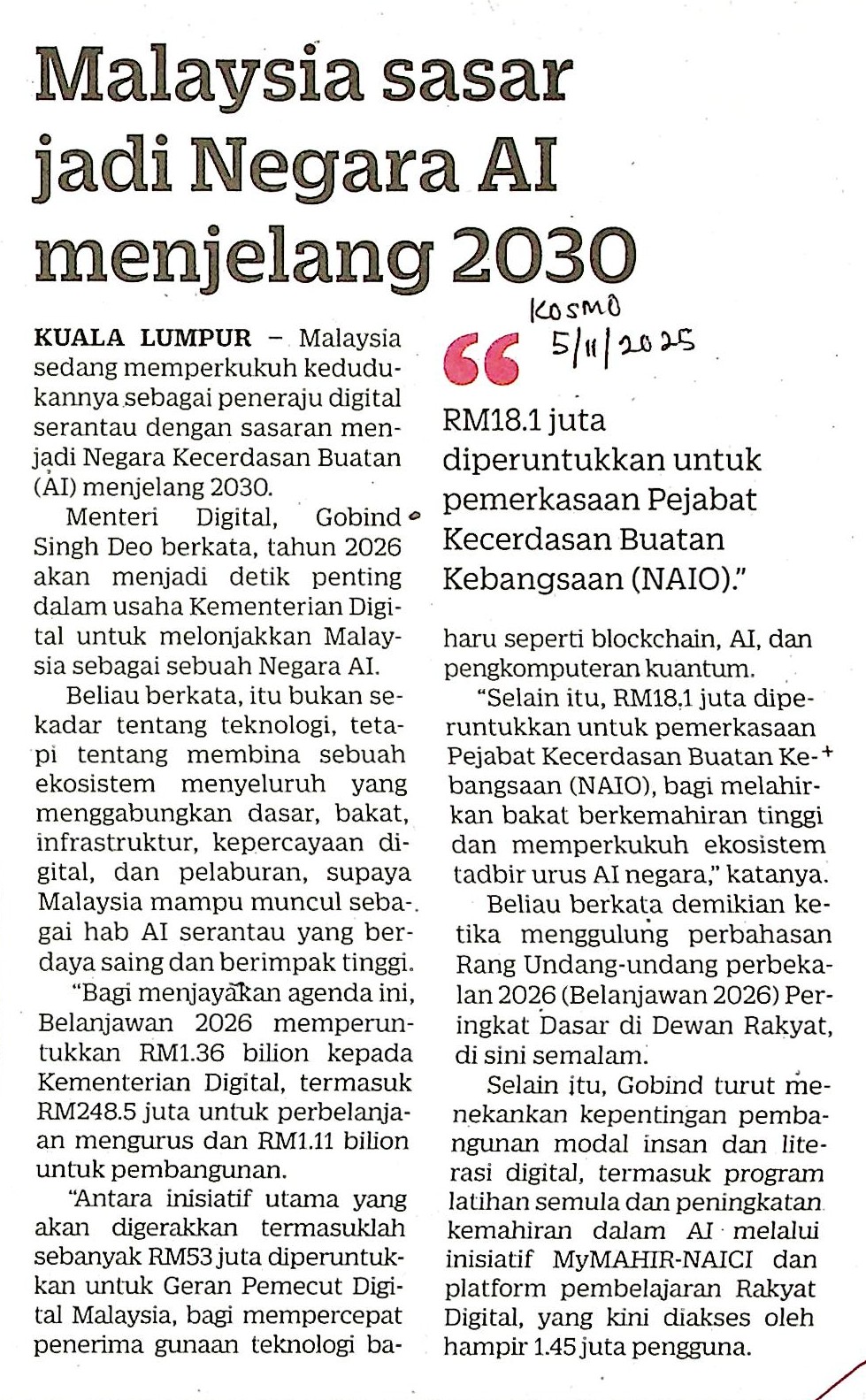 | KOSMO 5.11.25 (5).jpg | MALAYSIA SASAR JADI NEGARA AI MENJELANG 2030 | 527.12 kB | JPEG | View/Open |