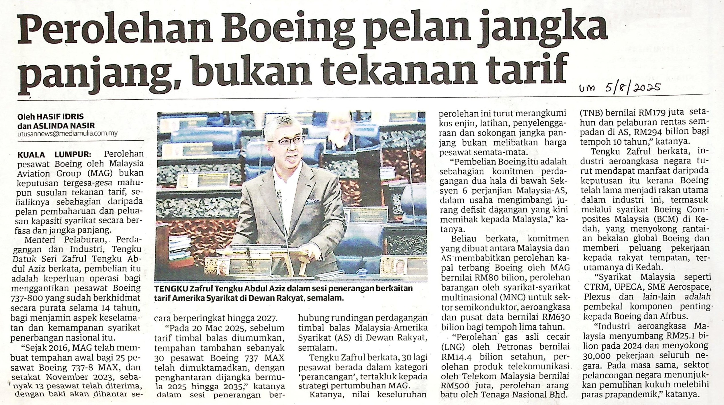 https://repositori.parlimen.gov.my/handle/123456789/3766| Title: | PEROLEHAN BOEING PELAN JANGKA PANJANG, BUKAN TEKANAN TARIF |