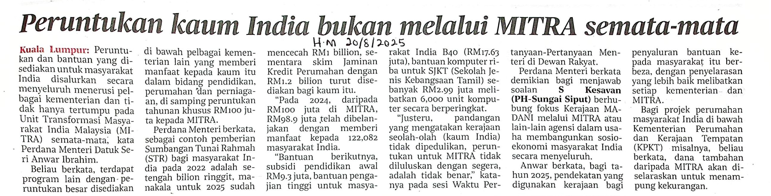| UM 20.08 (5).jpg | PERUNTUKAN KAUM INDIA BUKAN MELALUI MITRA SEMATA-MATA | 539 kB | JPEG | View/Open |