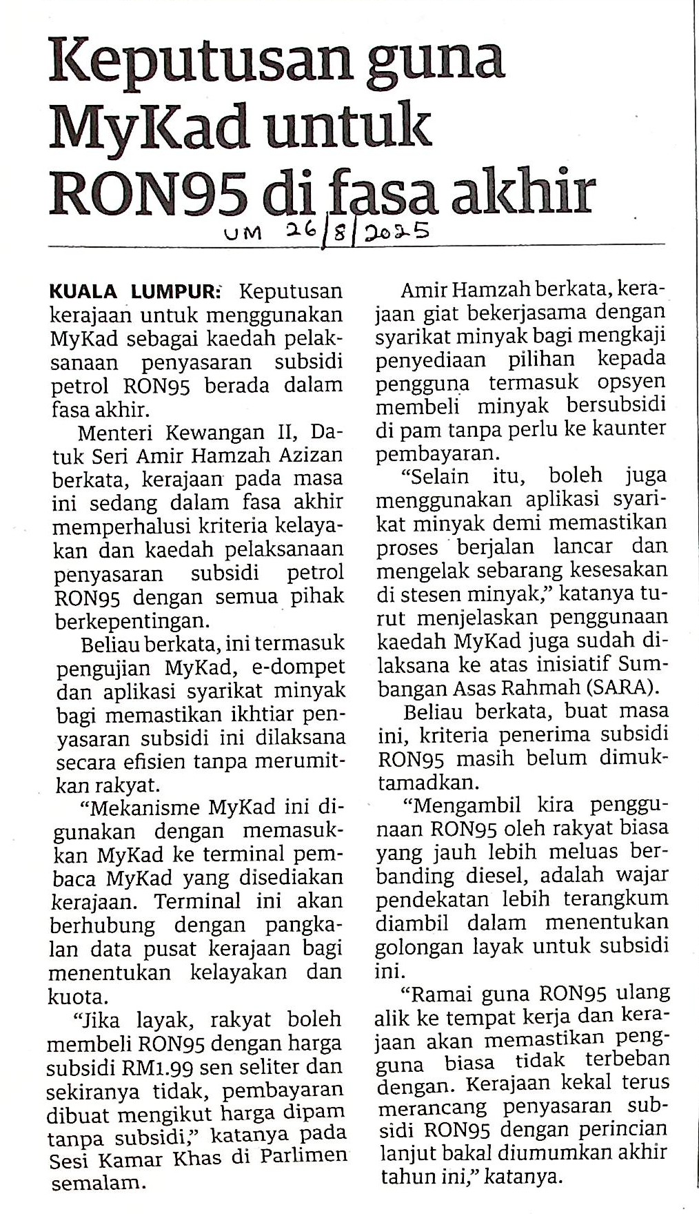 | UM 26.08 (2).jpg | KEPUTUSAN GUNA MYKAD UNTUK RON95 DI FASA AKHIR | 613.29 kB | JPEG | View/Open |