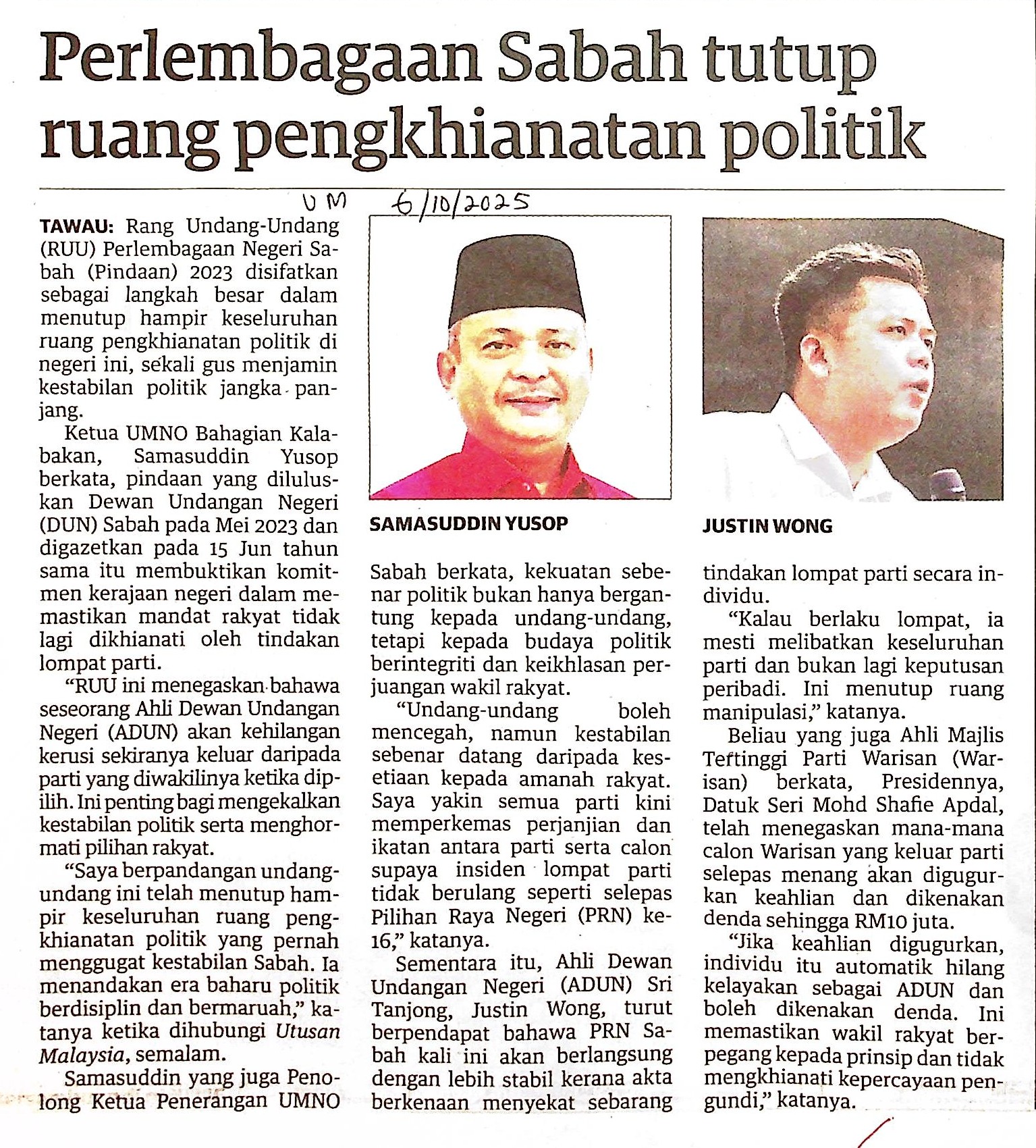 | UM 6.10.25.jpg | PERLEMBAGAAN SABAH TUTUP RUANG PENGKHIANATAN POLITIK | 892.98 kB | JPEG | View/Open |