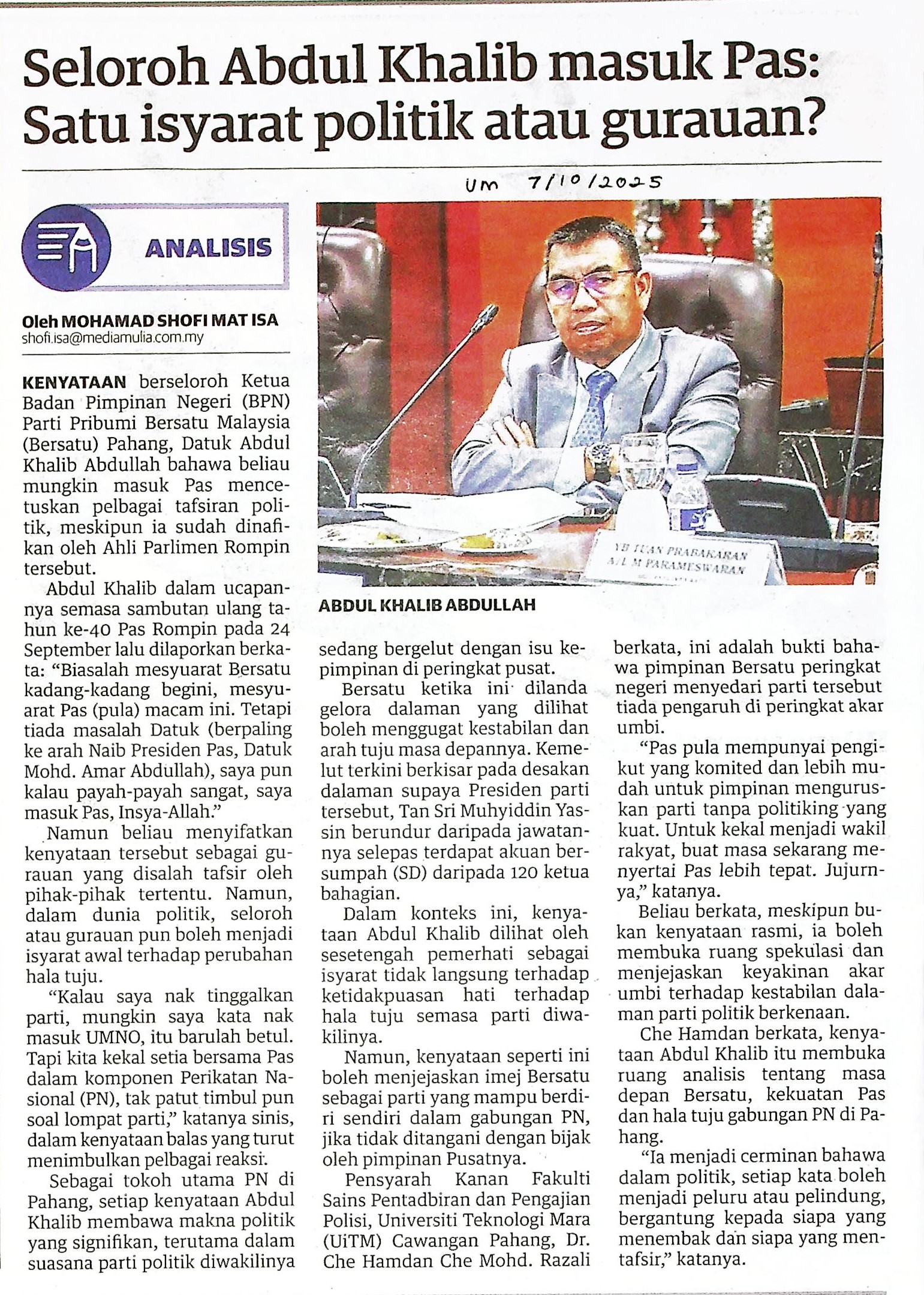 | UM 07.10.jpg | SELOROH ABDUL KHALIB MASUK PAS: SATU ISYARAT POLITIK ATAU GURAUAN? | 1.11 MB | JPEG | View/Open |