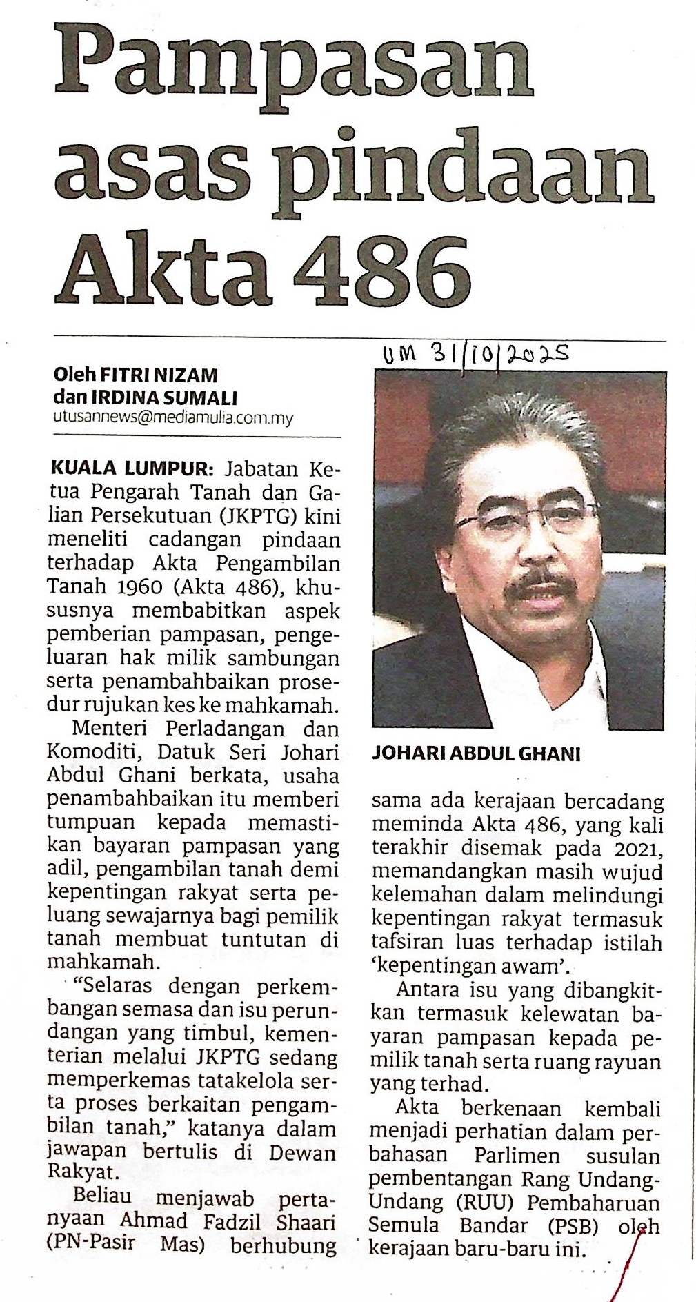 | UM 31.10.25.jpg | PAMPASAN ASAS PINDAAN AKTA 486 | 570.11 kB | JPEG | View/Open |