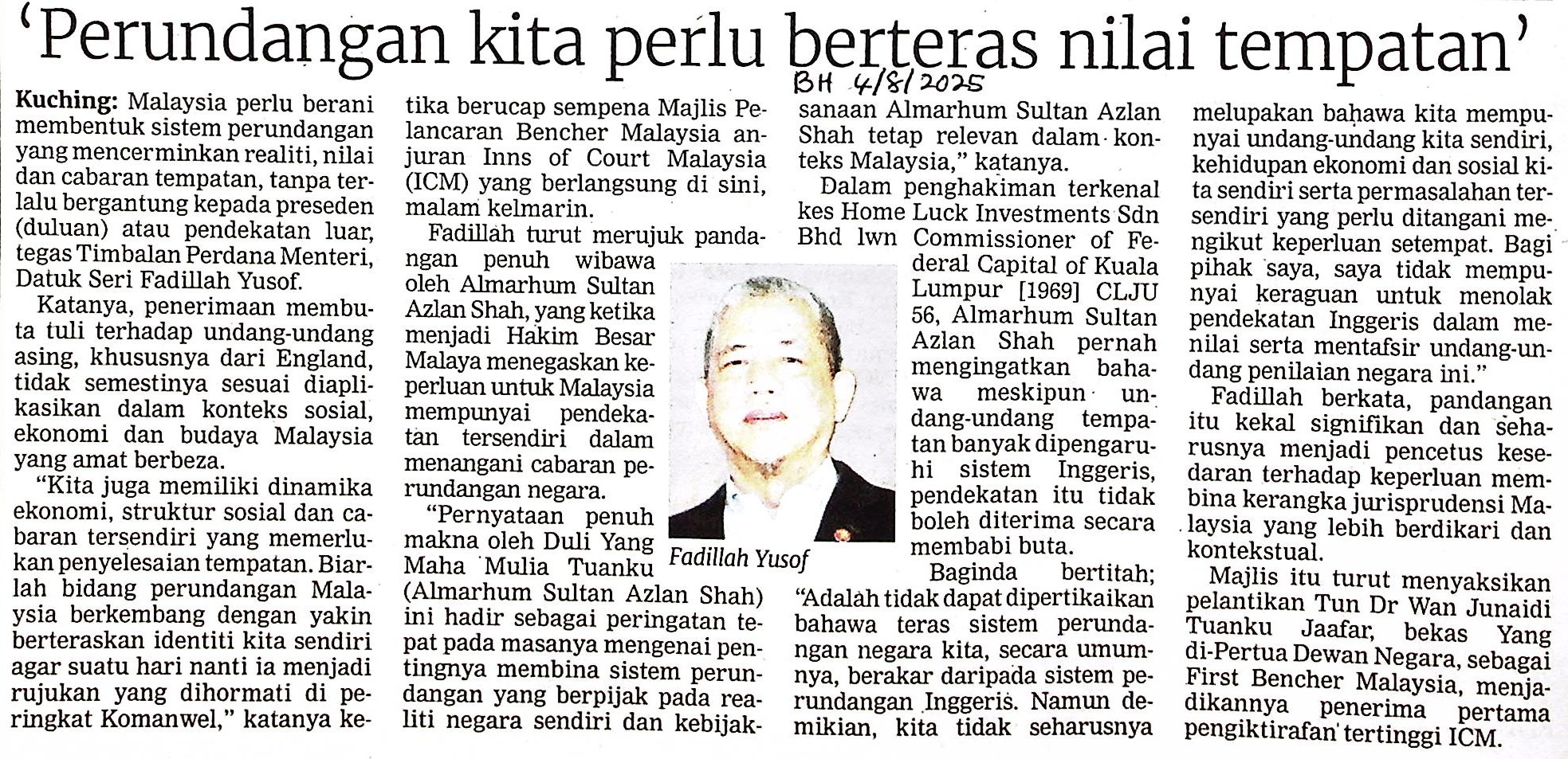 | BH 4.8.25.jpg | 'PERUNDANGAN KITA PERLU BERTERAS NILAI TEMPATAN' | 768.95 kB | JPEG | View/Open |