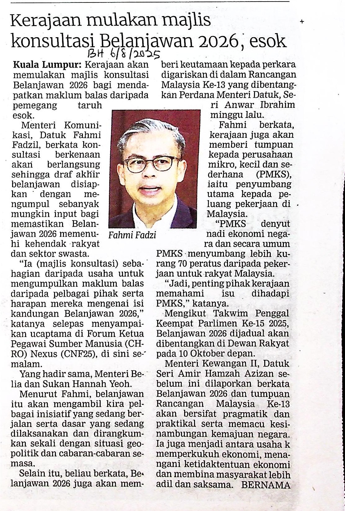 Title: KERAJAAN MULAKAN MAJLIS KONSULTASI BELANJAWAN 2026, ESOK