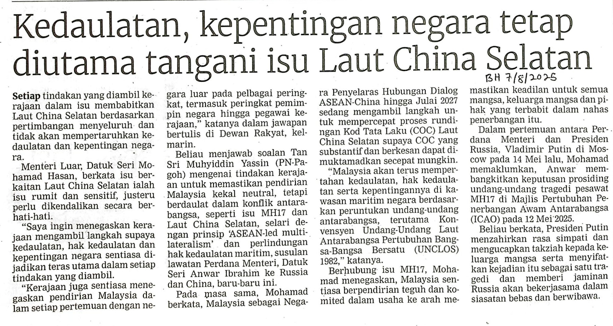 | BH 7.8.25 (8).jpg | KEDAULATAN, KEPENTINGAN NEGARA TETAP DIUTAMA TANGANI ISU LAUT CHINA SELATAN | 686.28 kB | JPEG | View/Open |