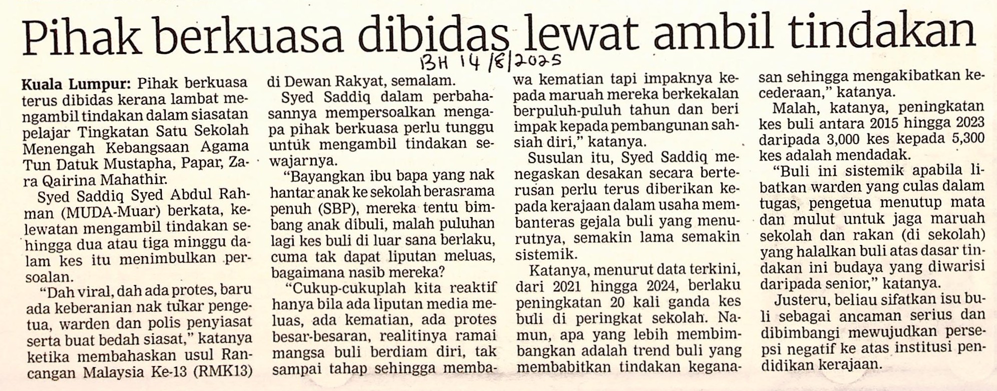 | BH 14.8.25.jpg | PIHAK BERKUASA DIBIDAS LEWAT AMBIL TINDAKAN | 563.84 kB | JPEG | View/Open |