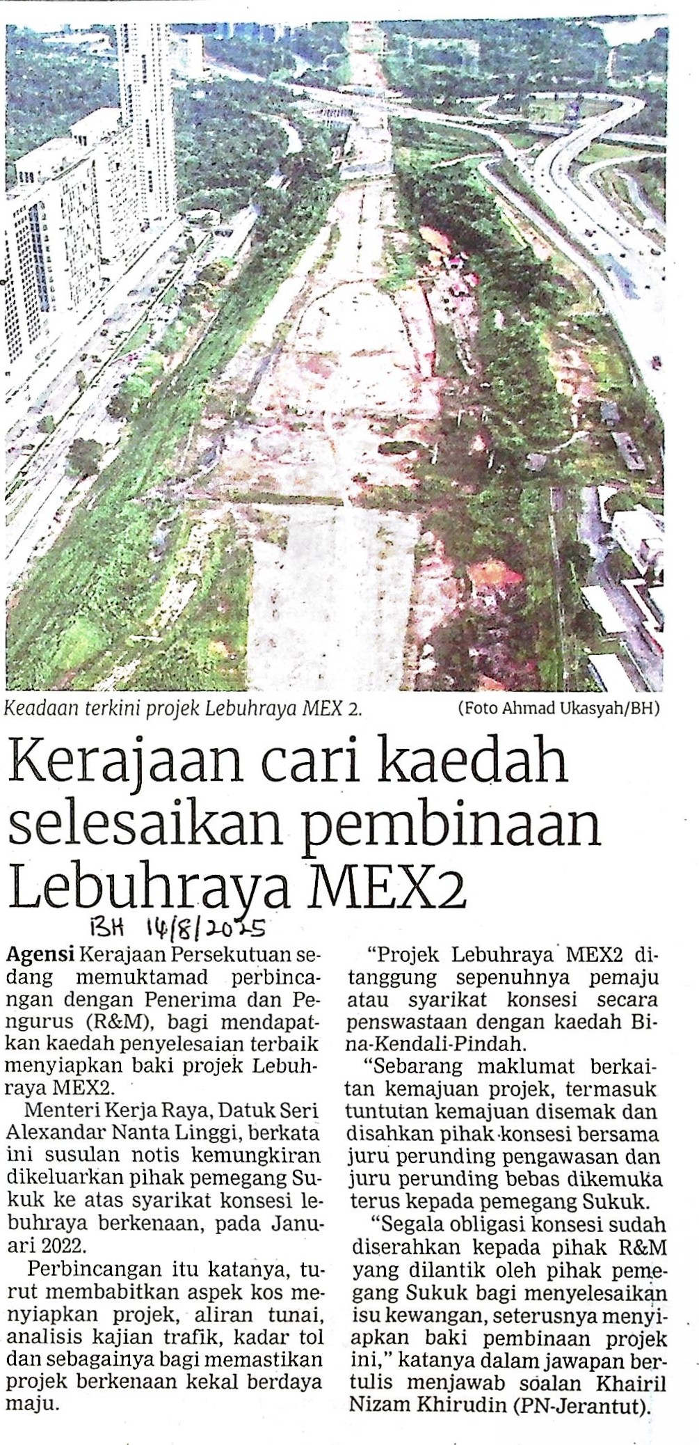 | BH 14.08.25.jpg | KERAJAAN CARI KAEDAH SELESAIKAN PEMBINAAN LEBUHRAYA MEX2 | 723.89 kB | JPEG | View/Open |