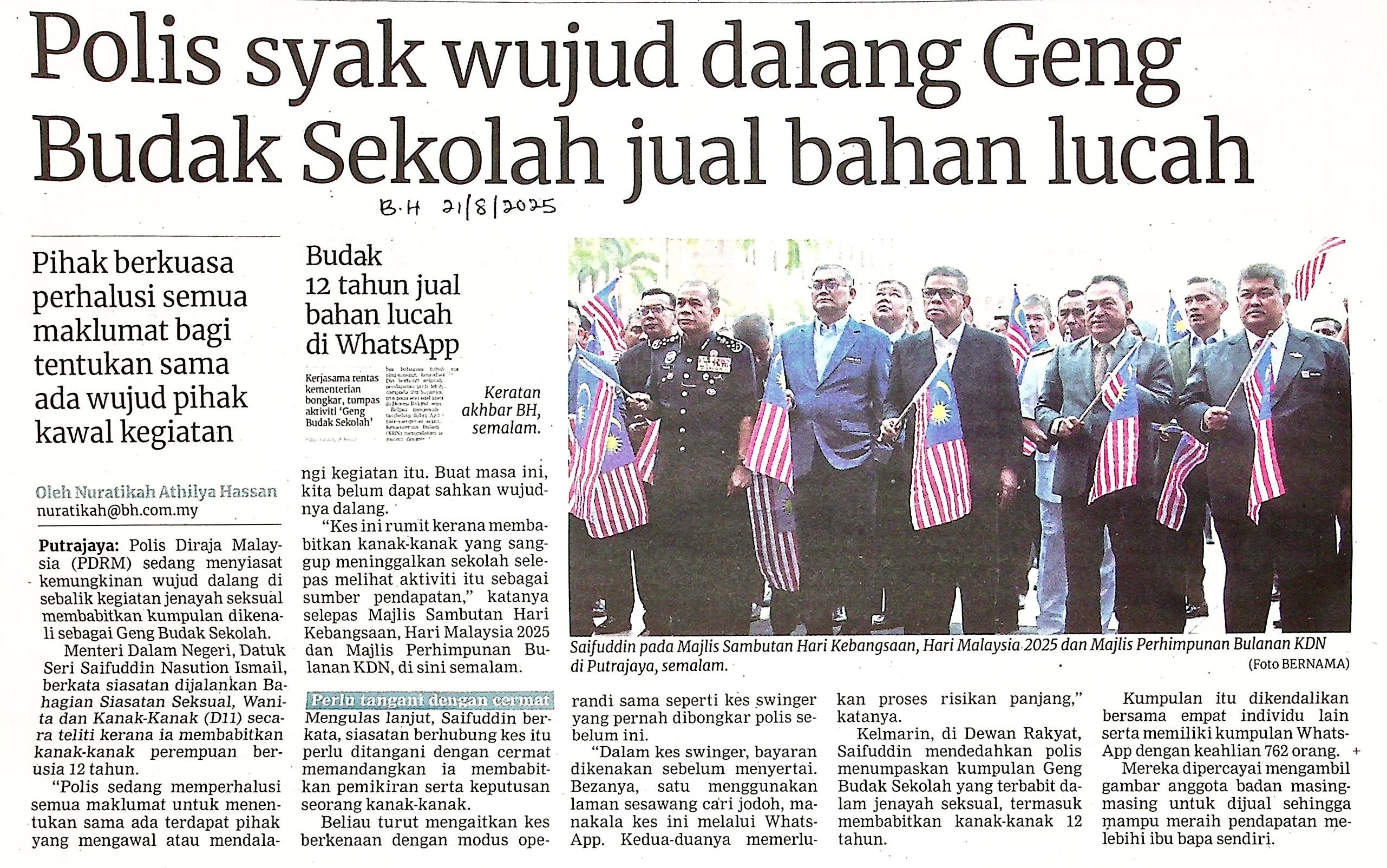 https://repositori.parlimen.gov.my/handle/123456789/3952| Title: | POLIS SYAK WUJUD DALANG GENG BUDAK SEKOLAH JUAL BAHAN LUCAH |