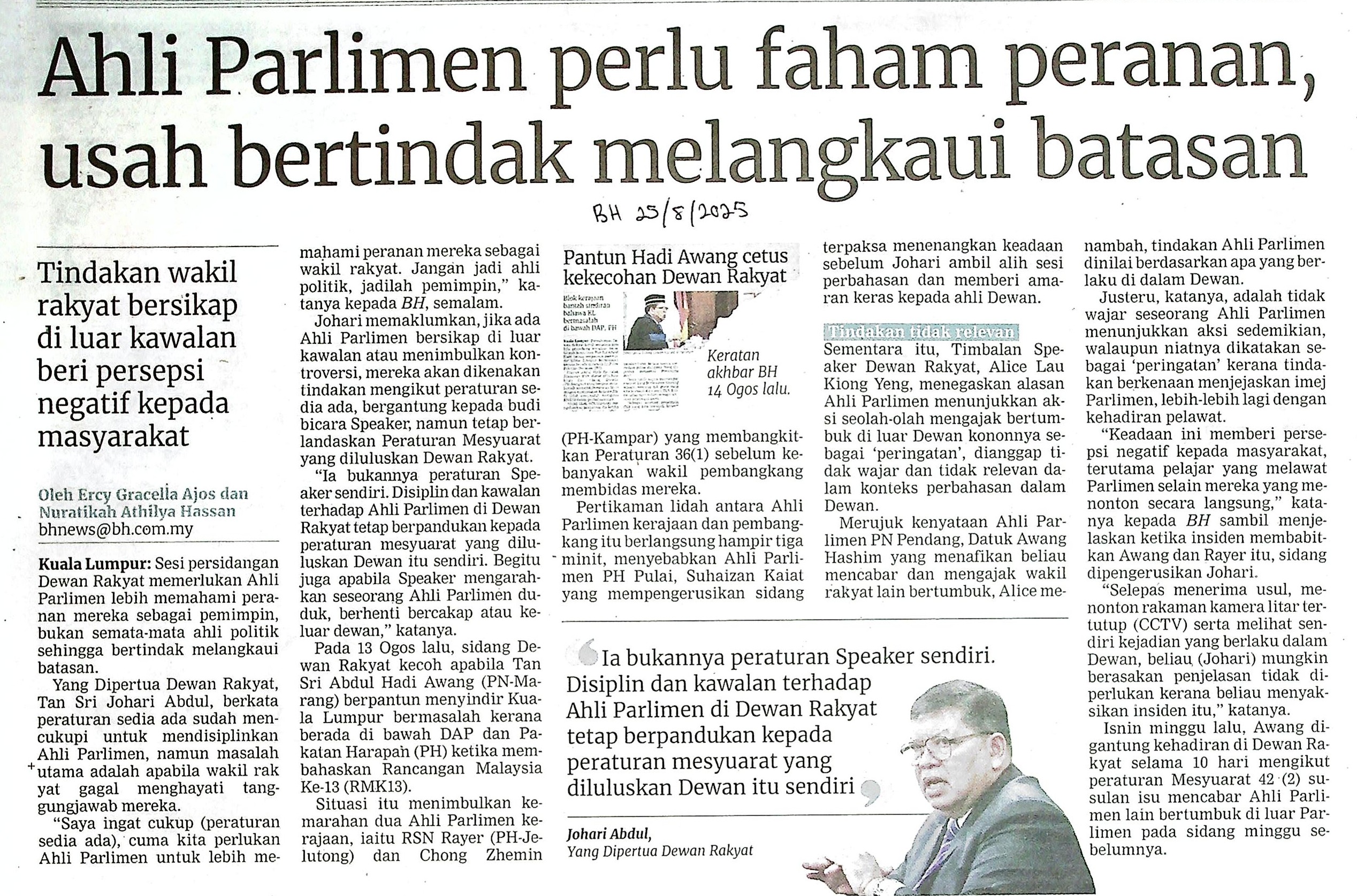 | BH 25.08 (2).jpg | AHLI PARLIMEN PERLU FAHAM PERANAN, USAH BERTINDAK MELANGKAUI BATASAN | 1.35 MB | JPEG | View/Open |