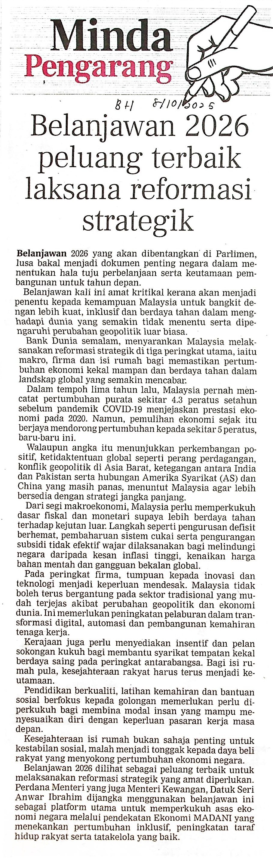 | BH 08.10 (2).jpg | BELANJAWAN 2026 PELUANG TERBAIK LAKSANA REFORMASI STRATEGIK | 959.76 kB | JPEG | View/Open |