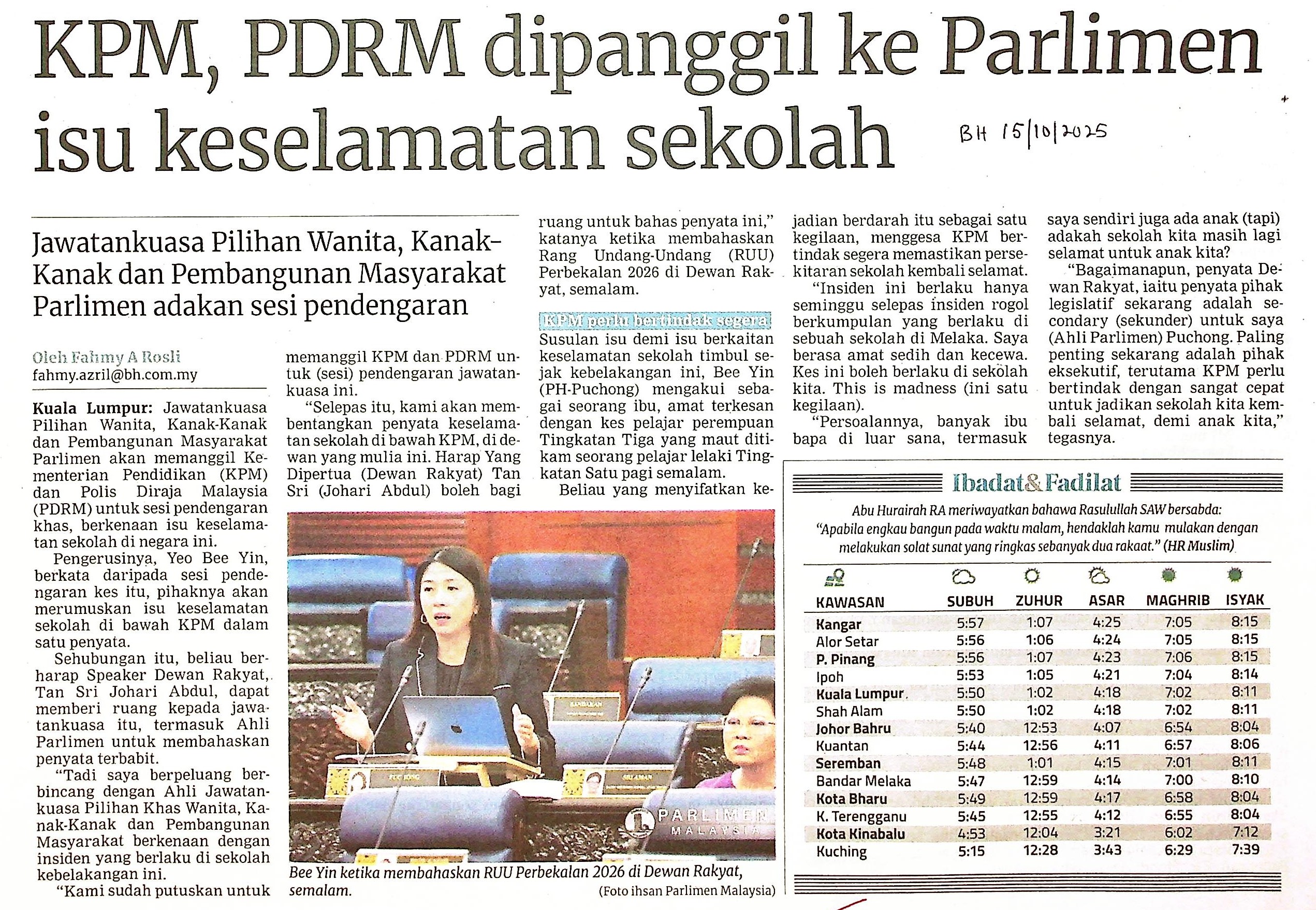 | BH 15.10.25.jpg | KPM, PDRM DIPANGGIL KE PARLIMEN ISU KESELAMATAN SEKOLAH | 1.41 MB | JPEG | View/Open |