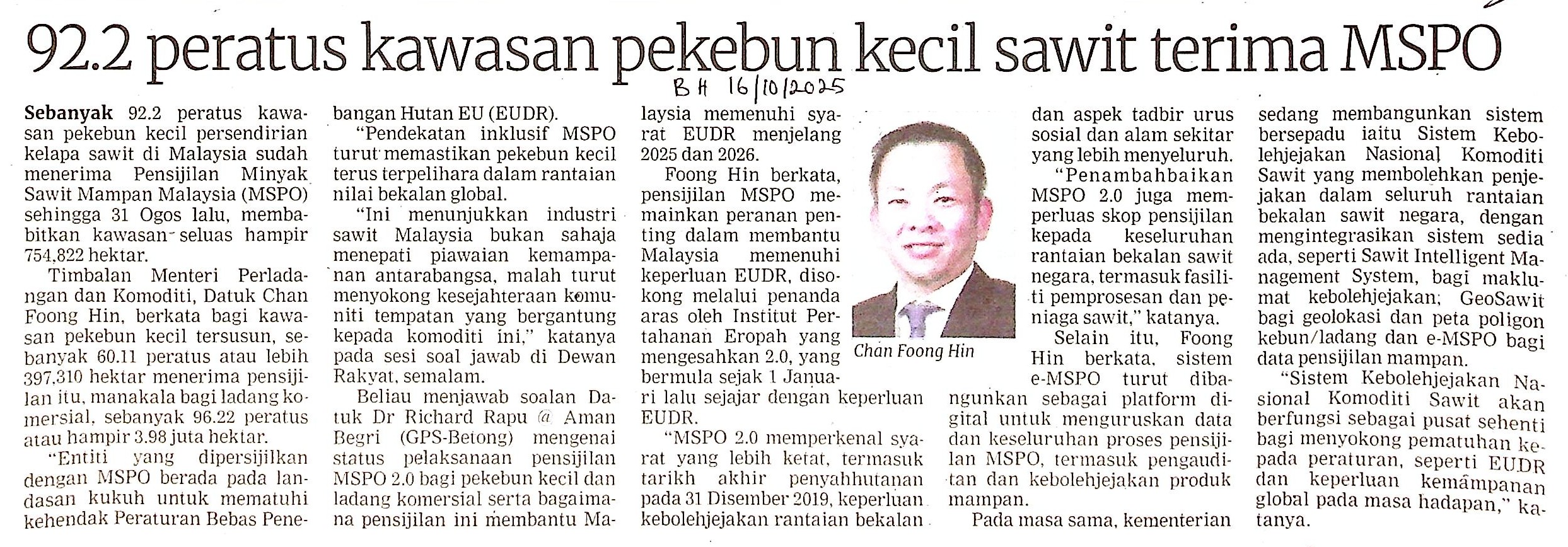 | BH 16.10.25 (4).jpg | 92.2 PERATUS KAWASAN PEKEBUN KECIL SAWIT TERIMA MSPO | 770 kB | JPEG | View/Open |