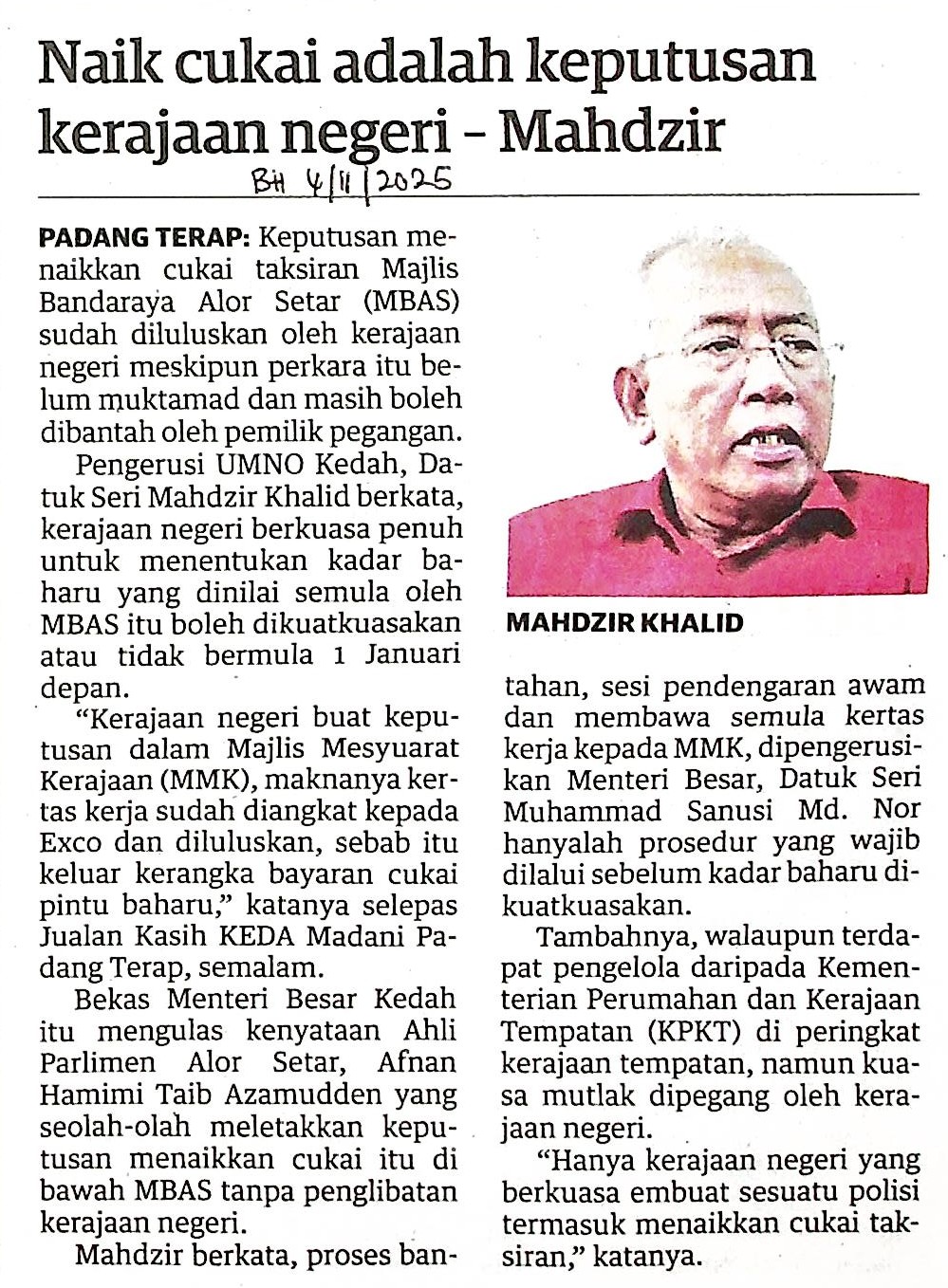 | BH 4.11.25 (3).jpg | NAIK CUKAI ADALAH KEPUTUSAN KERAJAAN NEGERI - MAHDZIR | 454.41 kB | JPEG | View/Open |