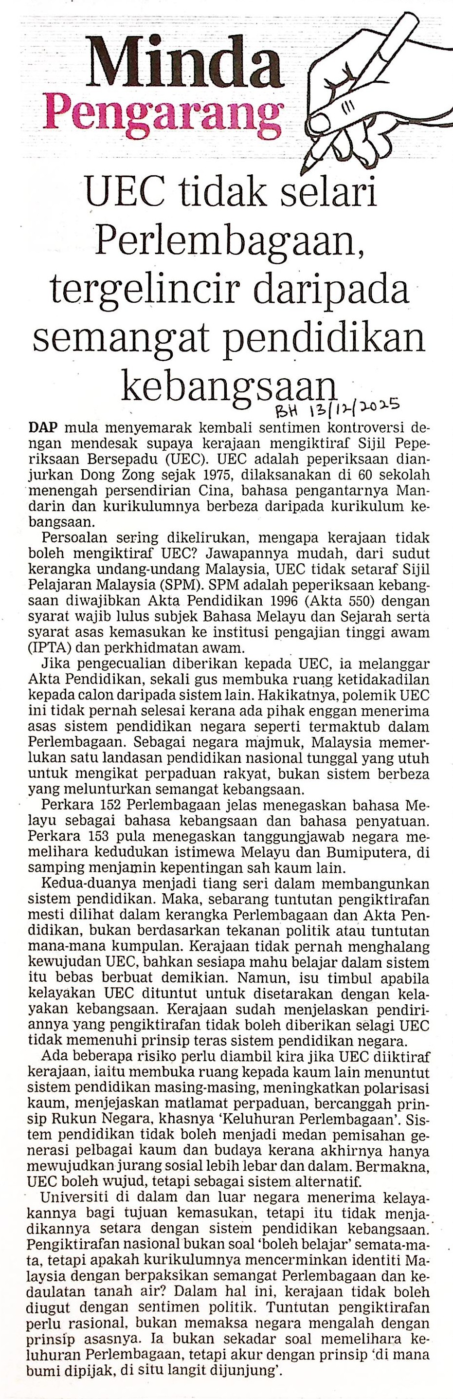 BH 13.12.25 (2).jpgUEC TIDAK SELARI PERLEMBAGAAN, TERGELINCIR DARIPADA SEMANGAT PENDIDIKAN KEBANGSAAN1.02 MBJPEGView/Open