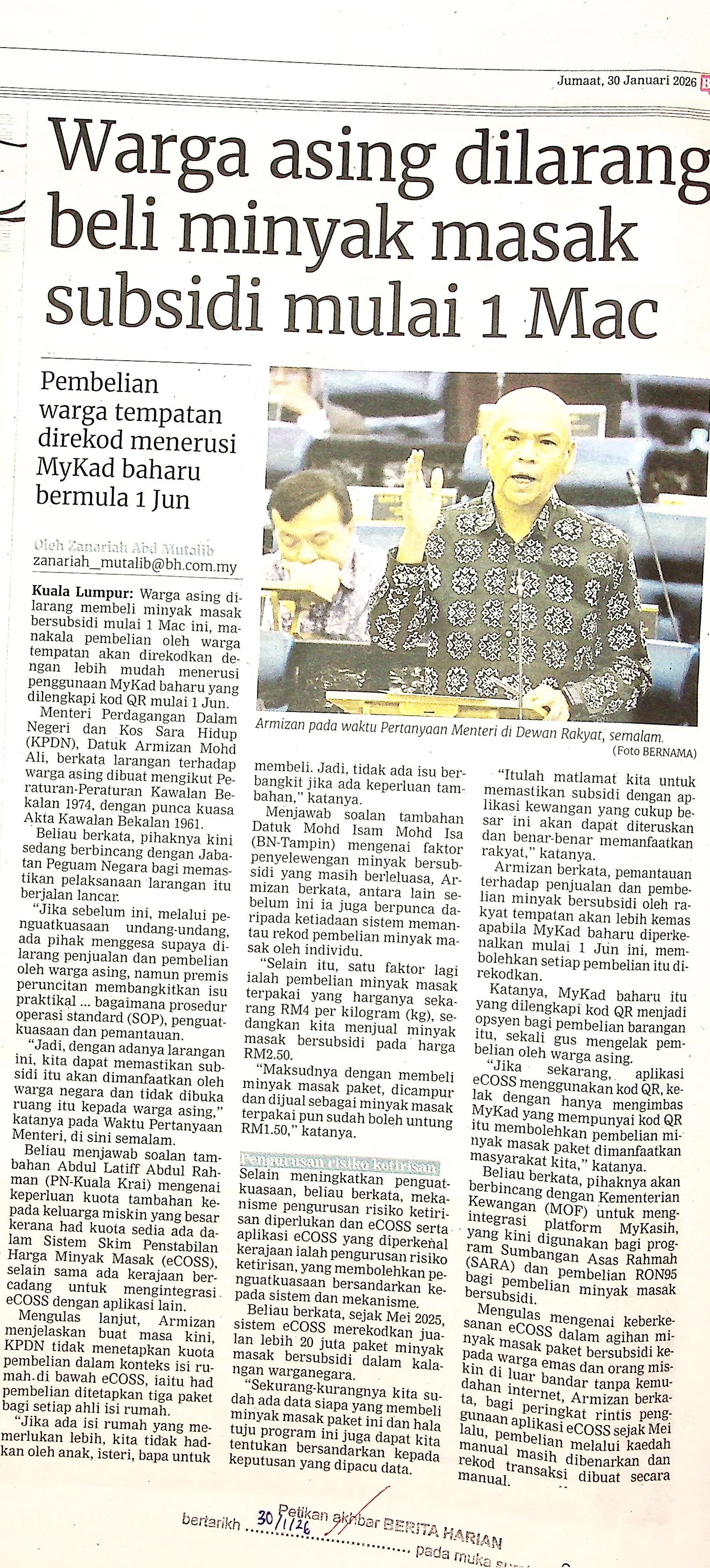 Title: WARGA ASING DILARANG BELI MINYAK MASAK SUBSIDI MULAI 1 MAC