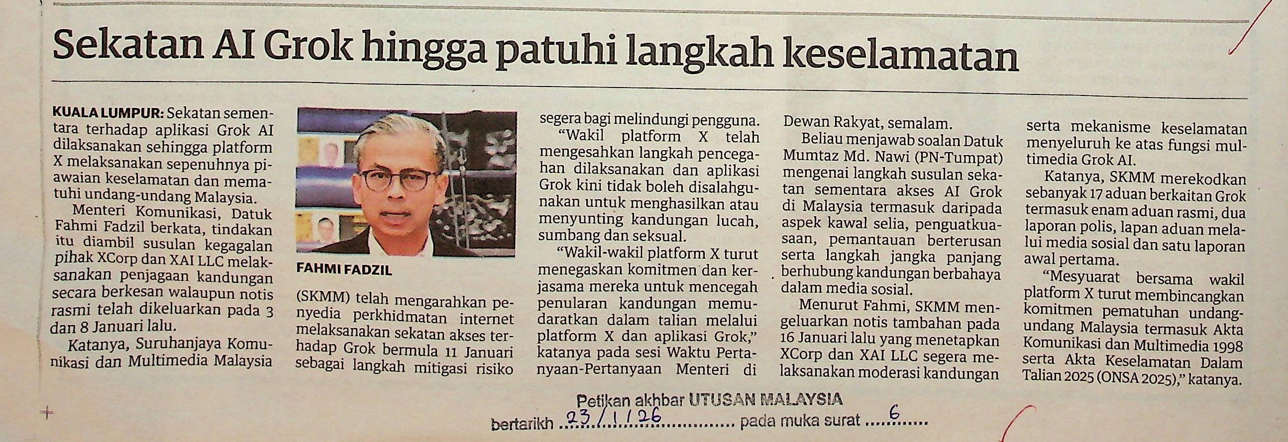 https://repositori.parlimen.gov.my/handle/123456789/4409| Title: | SEKATAN AI GROK HINGGA PATUHI LANGKAH KESELAMATAN |
