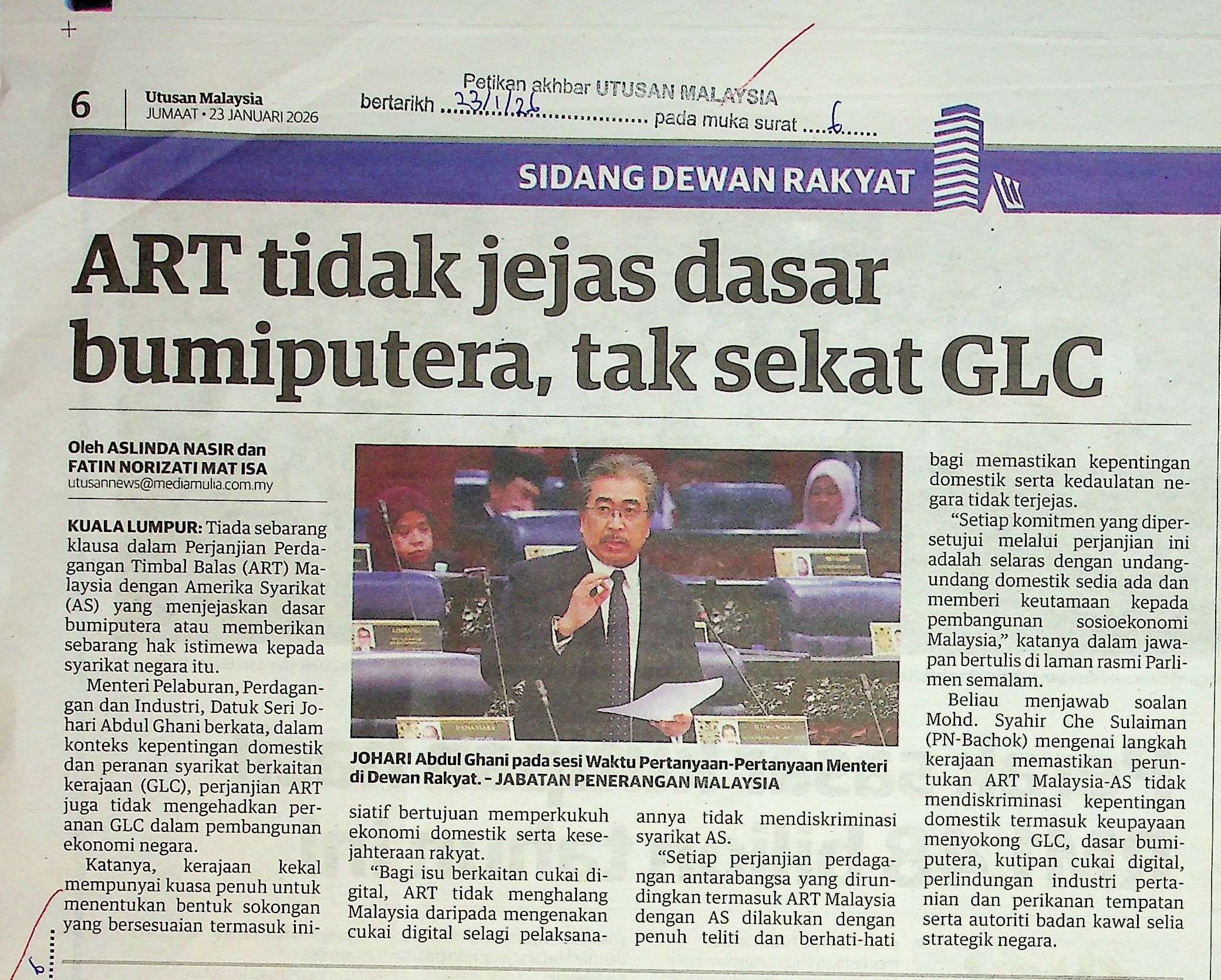 Title: ART TIDAK JEJAS DASAR BUMIPUTERA, TAK SEKAT GLC