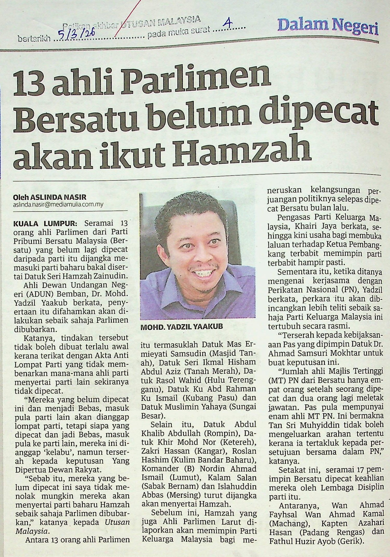 https://repositori.parlimen.gov.my/handle/123456789/4456| Title: | 13 AHLI PARLIMEN BERSATU BELUM DIPECAT AKAN IKUT HAMZAH |